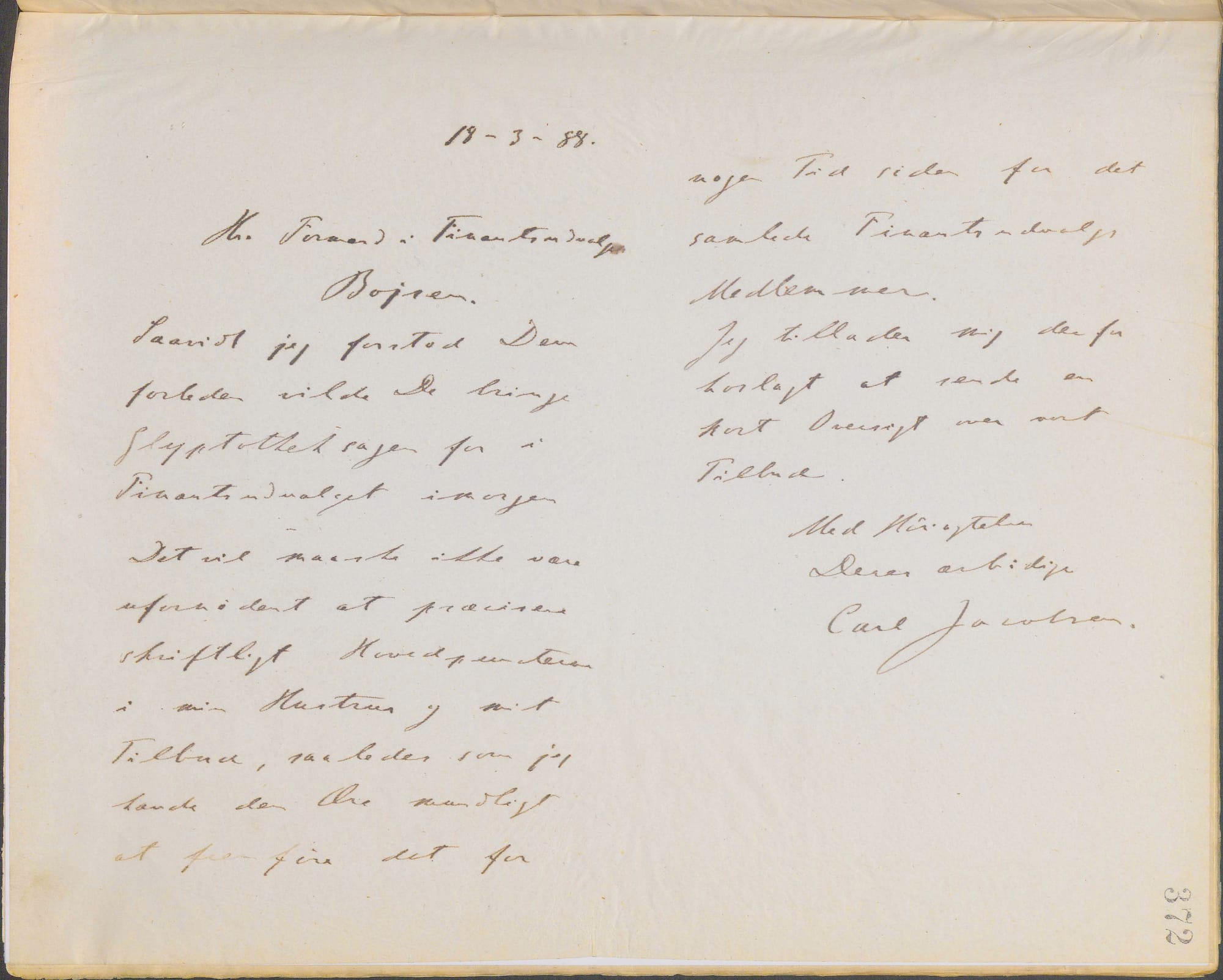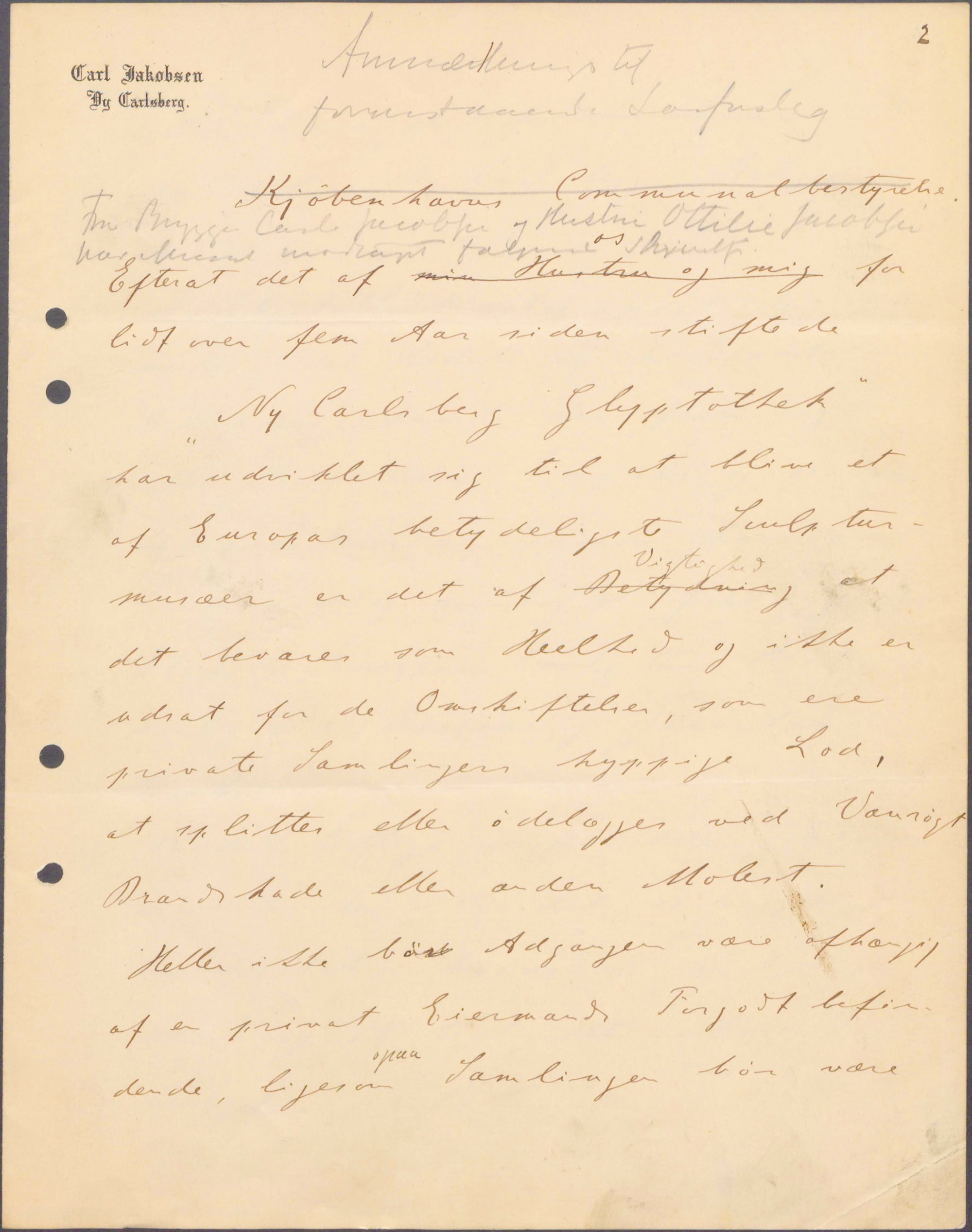 Carl Jacobsen letter to the Municipality of Copenhagen regarding the gift deed, 1888, Carl Jacobsens Letter Archive, New Carlsberg Foundation | Carl Jacobsen letter to the Finance Committee about his proposal, 1888, Carl Jacobsens Letter Archive, New Carlsberg Foundation