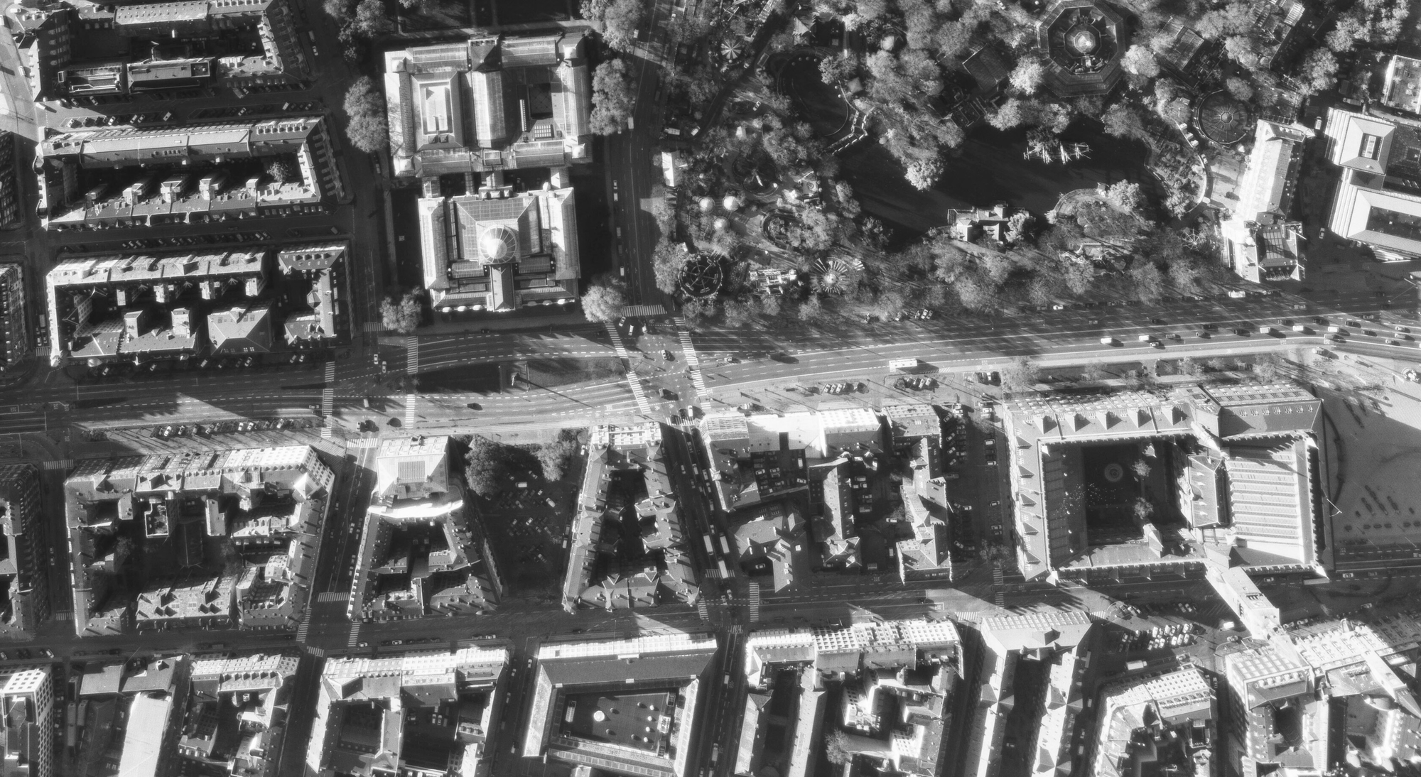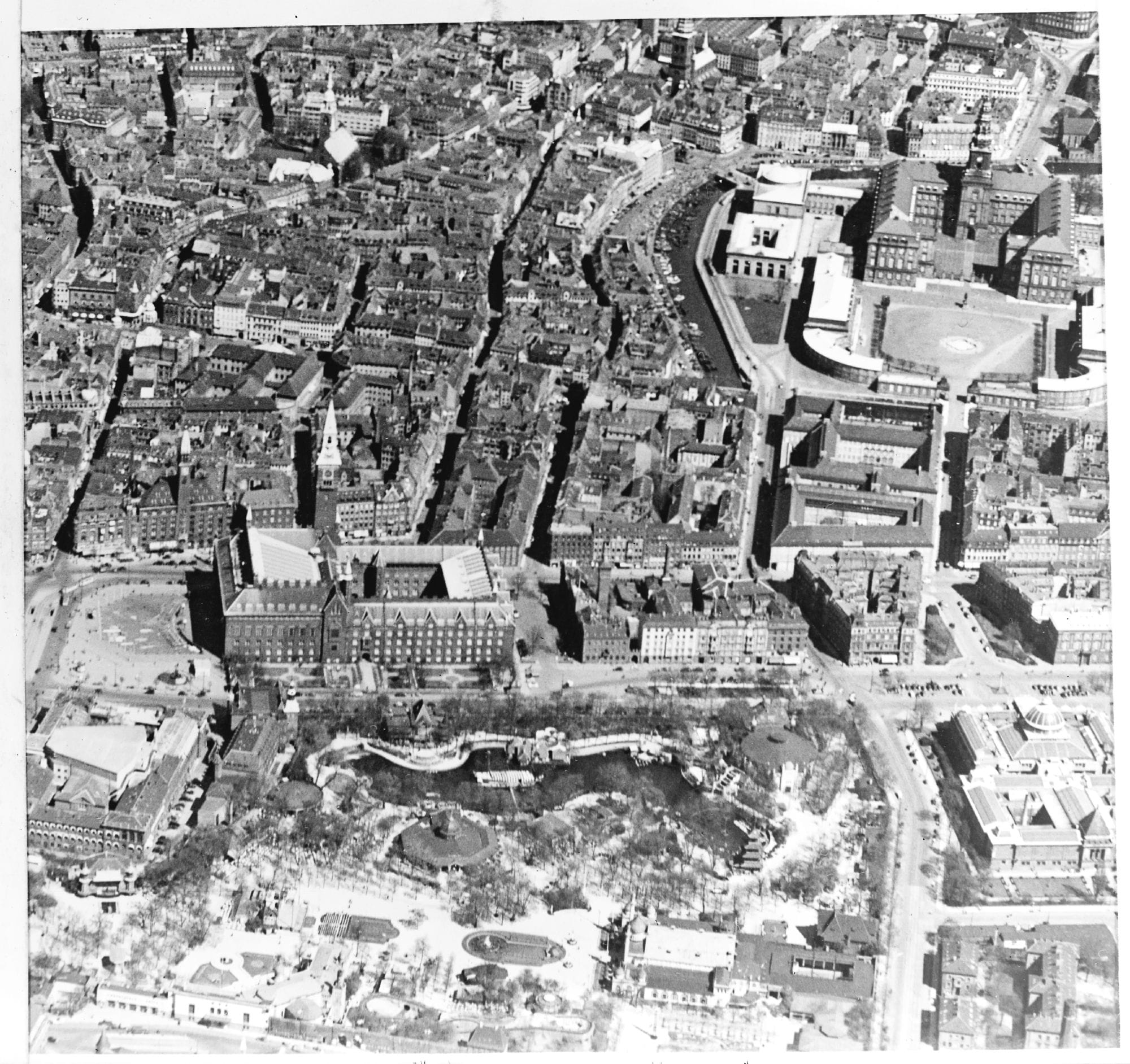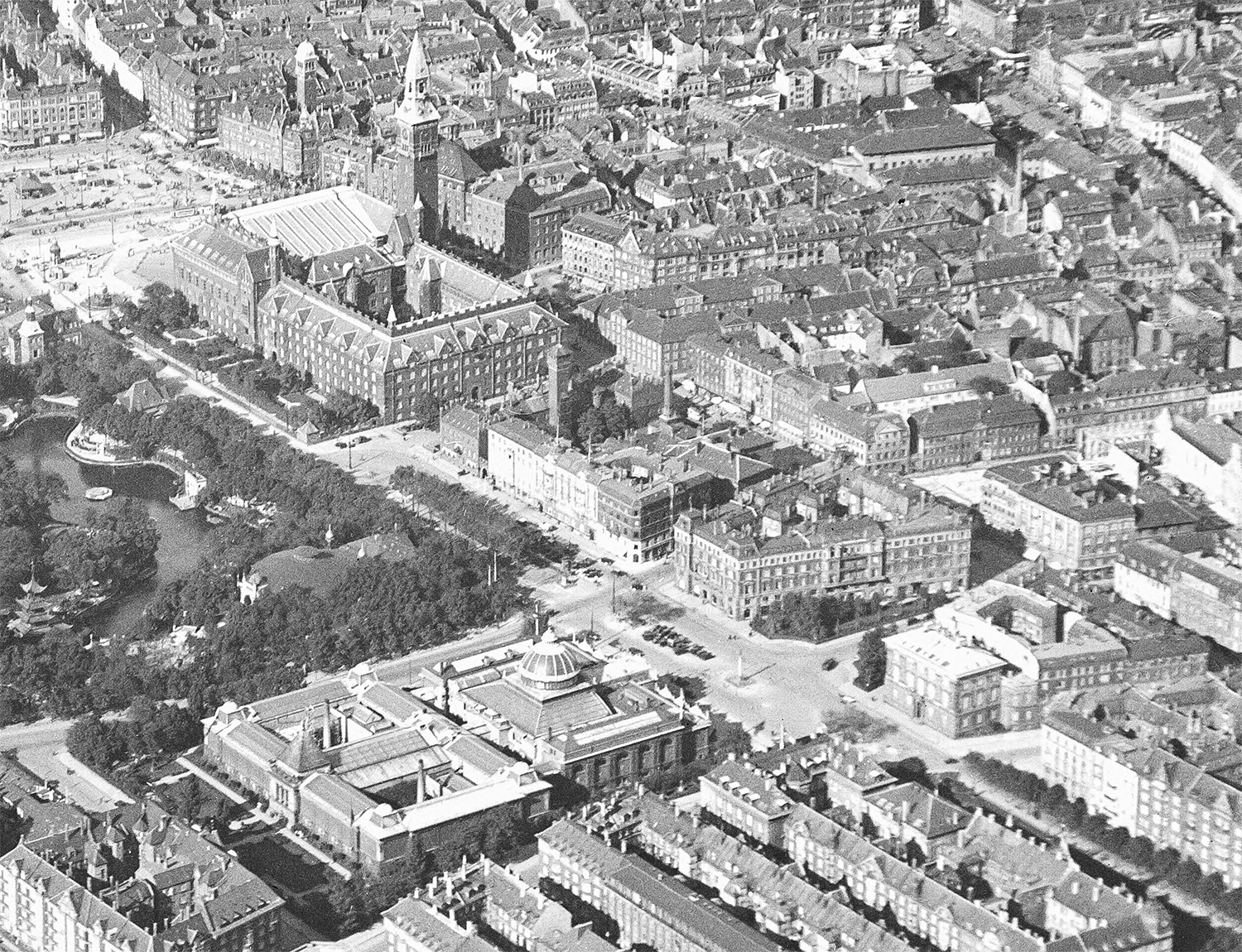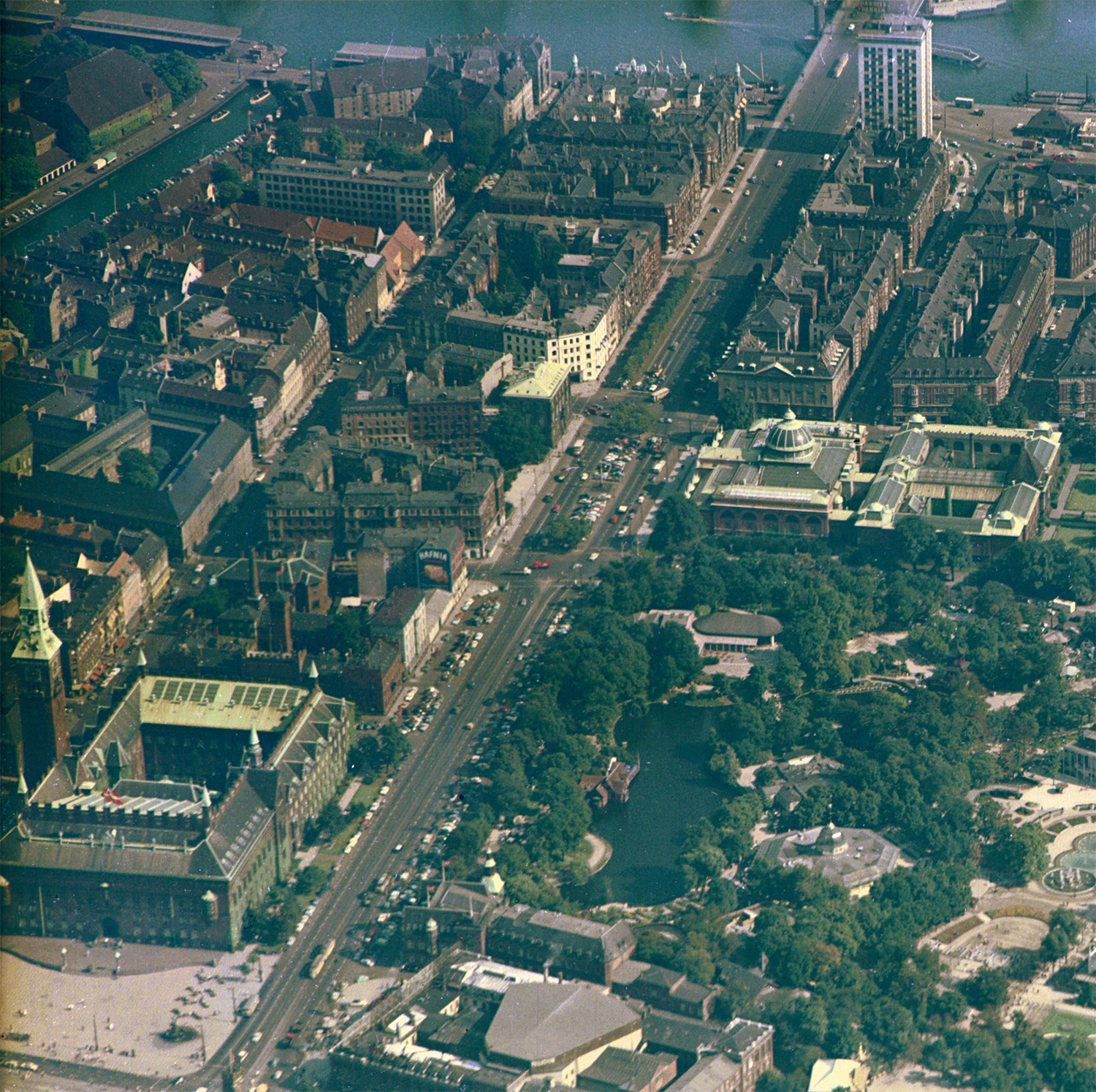 Undated, Paul Fischer, the Museum of Copenhagen | Late 1920s-early 1930s aerial, Danmark Set Fra Luften, Det Kgl. Bibliotek | Fritz Theodor Benzen, the Museum of Copenhagen | 1954, widening of H.C. Andersens Boulevard, Mogens Falk-Sørensen, the Museum of Copenhagen | 1960s aerial, Danmark Set Fra Luften, Det Kgl. Bibliotek | 1990s aerial, Danmark Set Fra Luften, Det Kgl. Bibliotek
