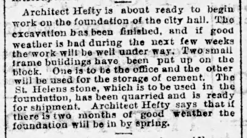 Belying the state’s argument about speed, the new commission took months to start work. Eventually, citing uncertainty around rising costs and questions of taste, they scrapped Hefty’s plans for city hall–but they were still on the hook to pay out his contract. Given the cost of paying him off, digging up the newly-laid foundation, hiring a new architect, and–you know, actually building the city hall…I’m skeptical that cost was the real driver here. It seems just as likely that this was a story of the new commission–beholden to a different power base–wanting to have their own guys in there.