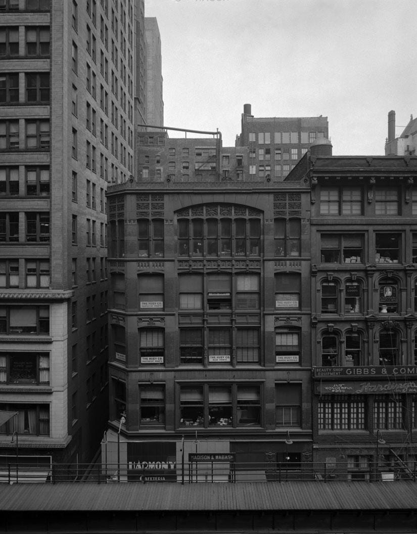 S.A. Maxwell / Jewelers Building, Richard Nickel, Art Institute of Chicago Archives via Chicago Collections | .A. Maxwell / Jewelers Building, Richard Nickel, Art Institute of Chicago Archives via Chicago Collections | Rae Building, 1970s, Illinois State Historic Preservation Office | Historic American Buildings Survey, Library of Congress | 1987, C. William Brubaker, UIC via Chicago Collections | 1998, Bob Thall, NRHP Nomination Form