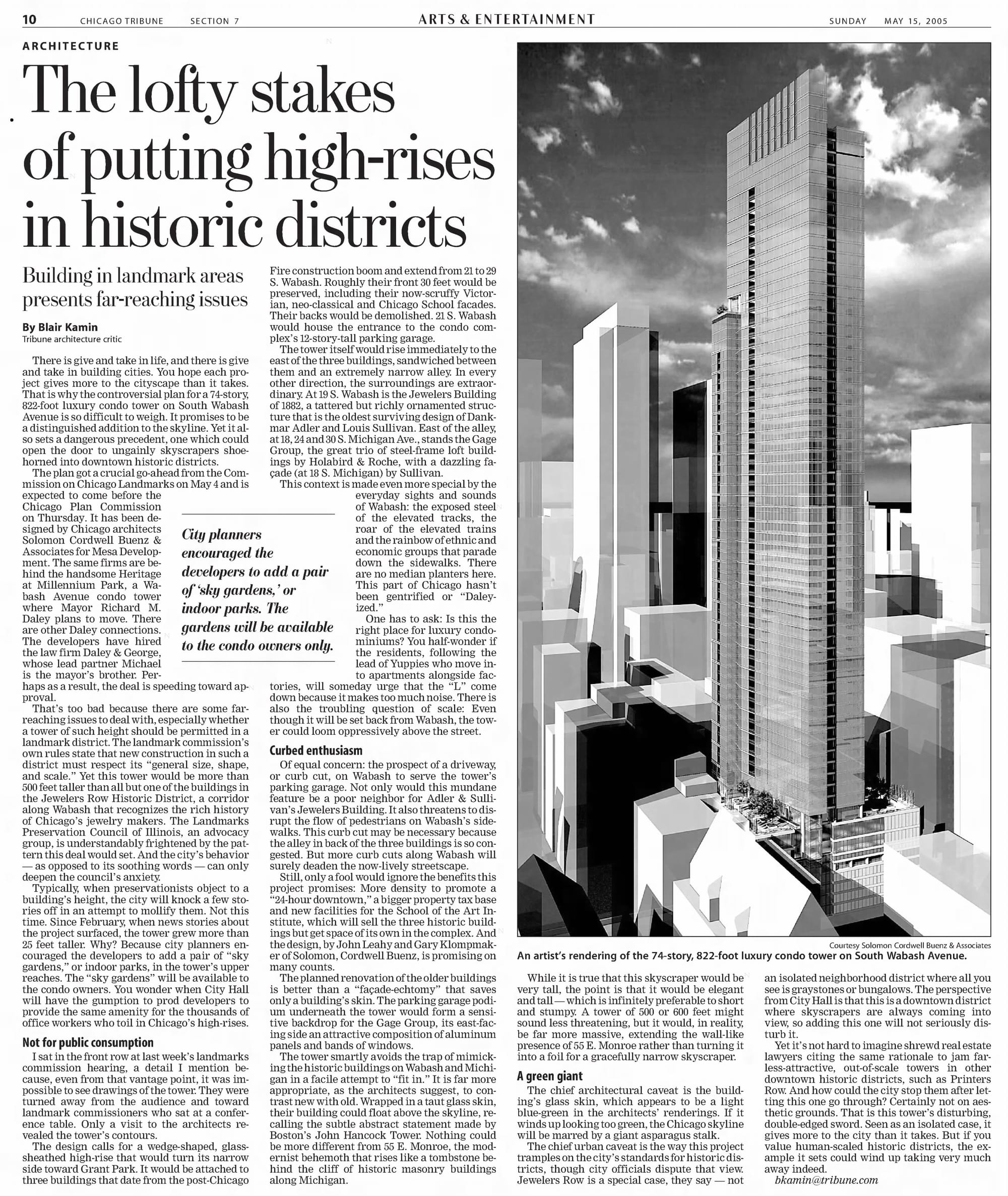 That landmark designation came into play very quickly here. In 2005, Mesa Development and SCB proposed repeating the trick they performed one block north on Wabash at The Heritage at Millennium Park, where they demolished everything but the facade of four post-fire commercial buildings and used them to line the skyscraper’s parking garage. The Legacy at Millennium Park would be taller, sleeker, and even more ambitious than the Heritage—72 stories, 360 condos, and a disgusting 460 parking spaces right next to the L.