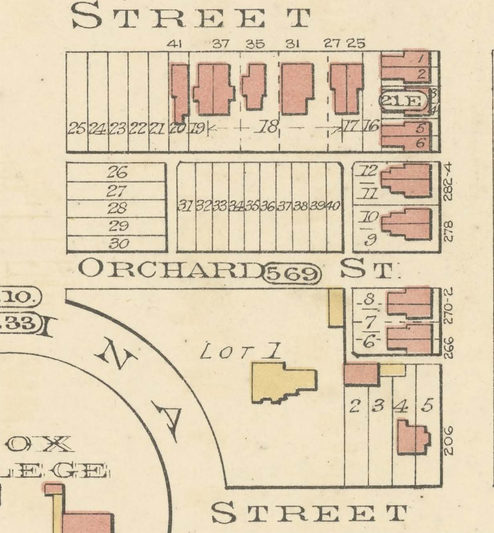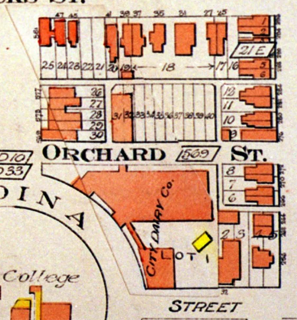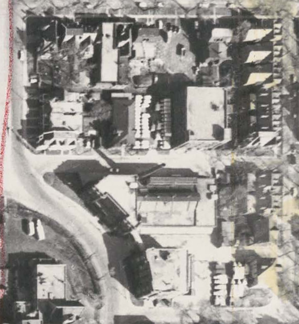 The block in fire insurance and aerial maps from 1899 to 2024.