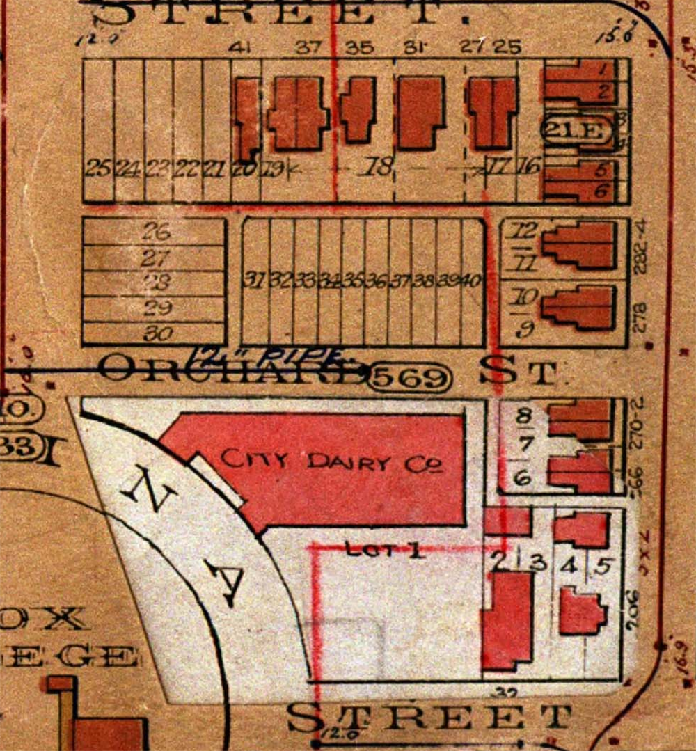 - The South Borden Building—where they manufactured ice cream, also designed by George Martel Miller—opened in 1910, and at some point they both lost their cornice, replaced by that shitty red metal band.