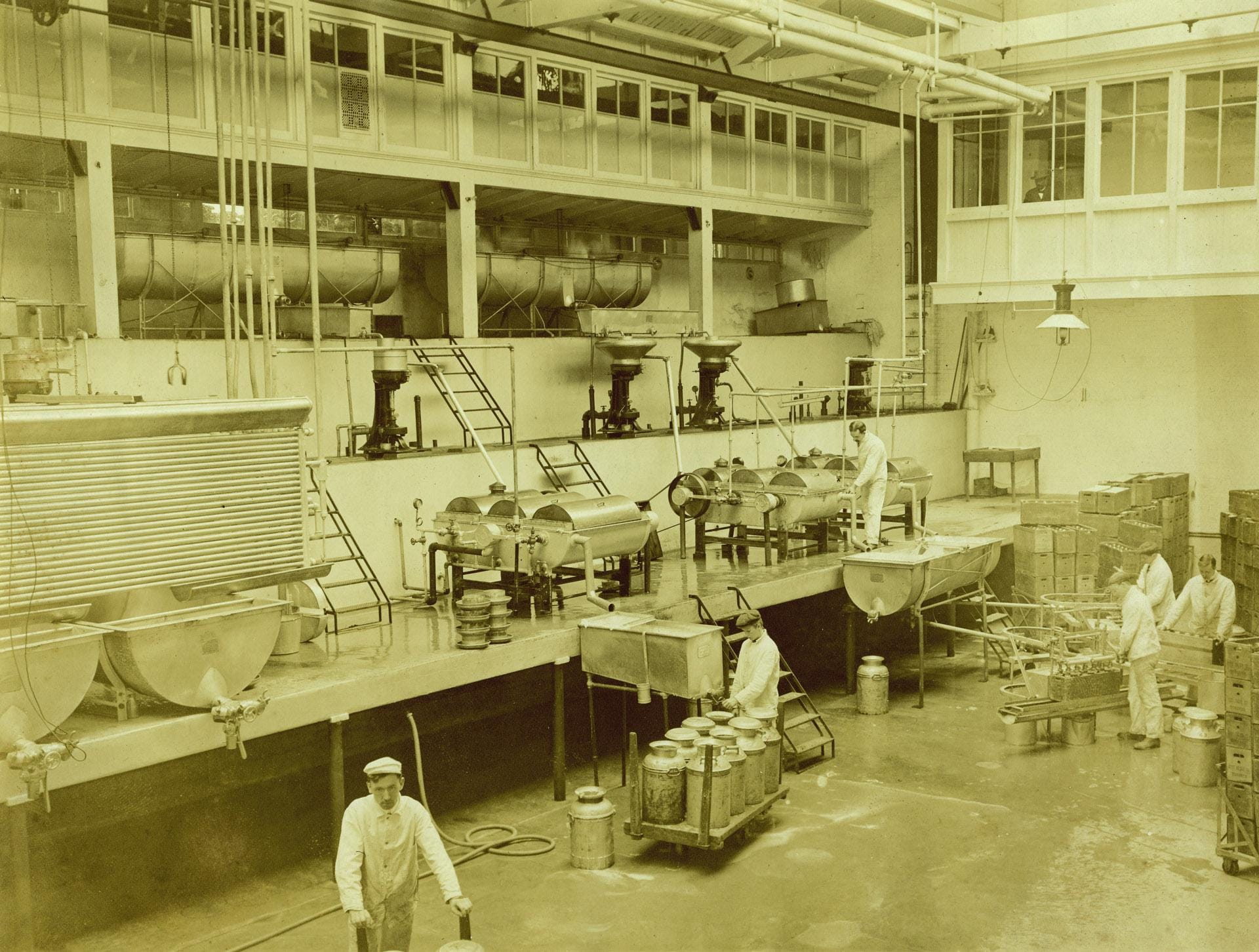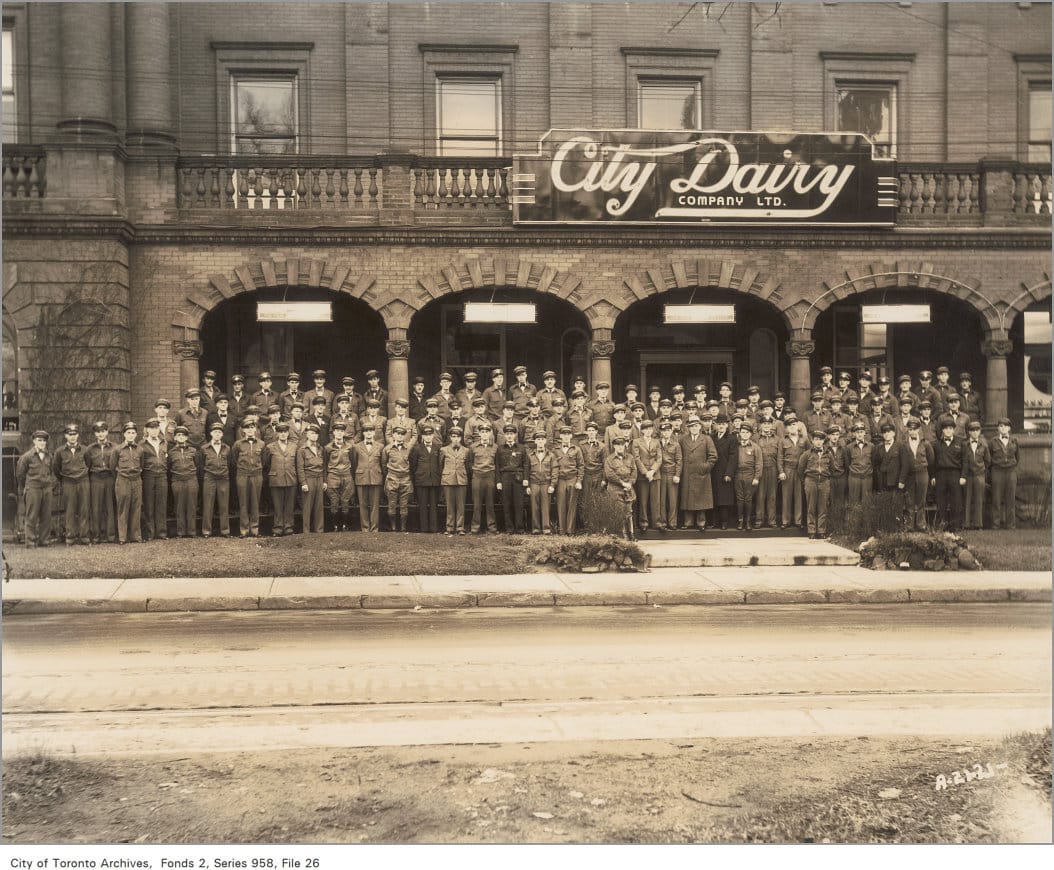 Known for its yellow wagons, City Dairy grew into one of the biggest players in Canada—they regularly claimed that this plant served more homes than any other dairy in the entire British Empire. Their growth caught American attention. American dairy giant Borden acquired City Dairy for CAD $7m in 1930 (the equivalent of $93m USD today), and Borden made this facility their Canadian headquarters.
