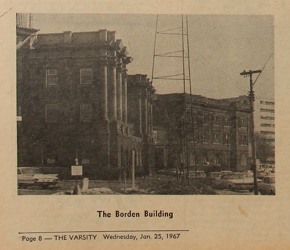 Demolishing the Borden buildings and replacing them with purpose-built academic space probably would have been the easy move, but an expanding U of T already had a massive capital building program underway. A bunch of departments—sociology, anthropology, and forestry—moved into the Borden Buildings temporarily…and then the university just kind of let them linger for decades.