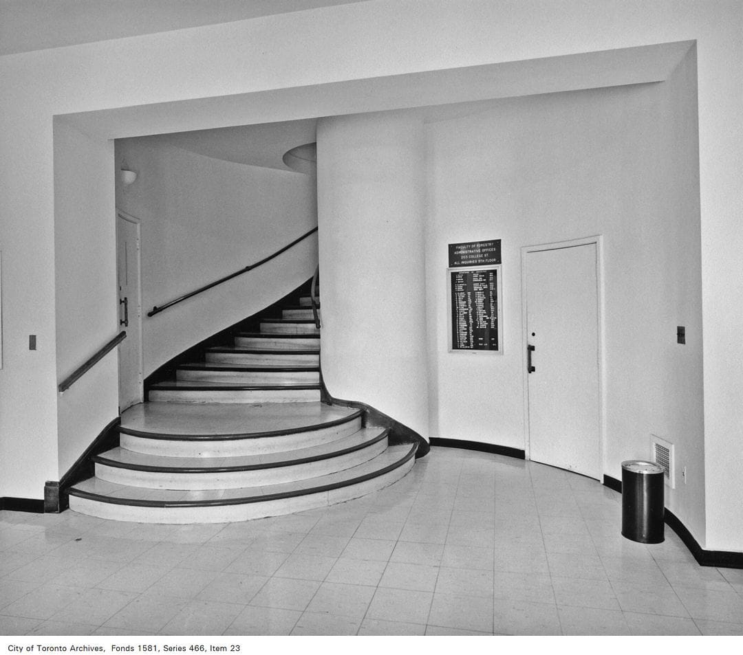 1980s-1990s, Bancroft looking west to Borden Building North, City of Toronto Archives | 1980s-1990s, Borden Building North, City of Toronto Archives | 1983, stairway, City of Toronto Archives | 1984, forestry department, City of Toronto Archives | 2010, James Jay Allen, City of Toronto Archives