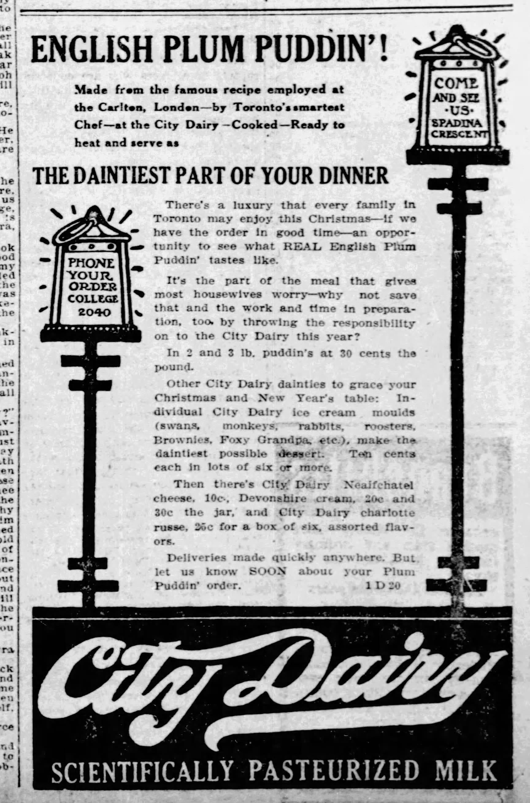 1903 ad, Illustrated souvenir of the Letter Carriers Association of Toronto, the Internet Archive | 1903 ad | 1909 ice cream and plum pudding ads | 1909, Report on a comprehensive plan for systematic civic improvements in Toronto, the Internet Archive