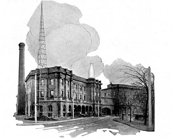 - The North Borden Building lost its brick smokestack…but this perspective gained another in 1952 with the completion of the Russell Street Central Steam Plant.
