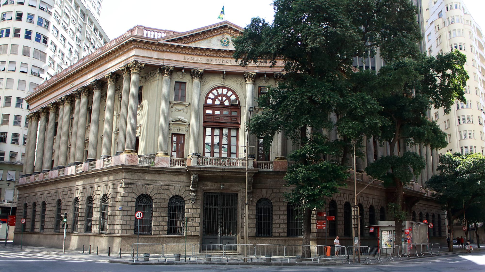- Below the pediment, the lettering now says Banco Central do Brasil rather than Caixa de Amortização—the Central Bank of Brazil assumed the Caixa’s responsibilities in 1967 and took over the building.
