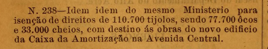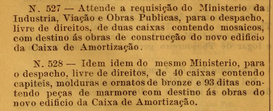 Customs records of building supply shipments, Boletim da Alfandega do Rio de Janeiro, Anno XIX - 1905, the Internet Archive | 1906, Marc Ferrez, Instituto Moreira Salles Collection, Wikimedia Commons | 1906, Marc Ferrez, Instituto Moreira Salles Collection, Wikimedia Commons