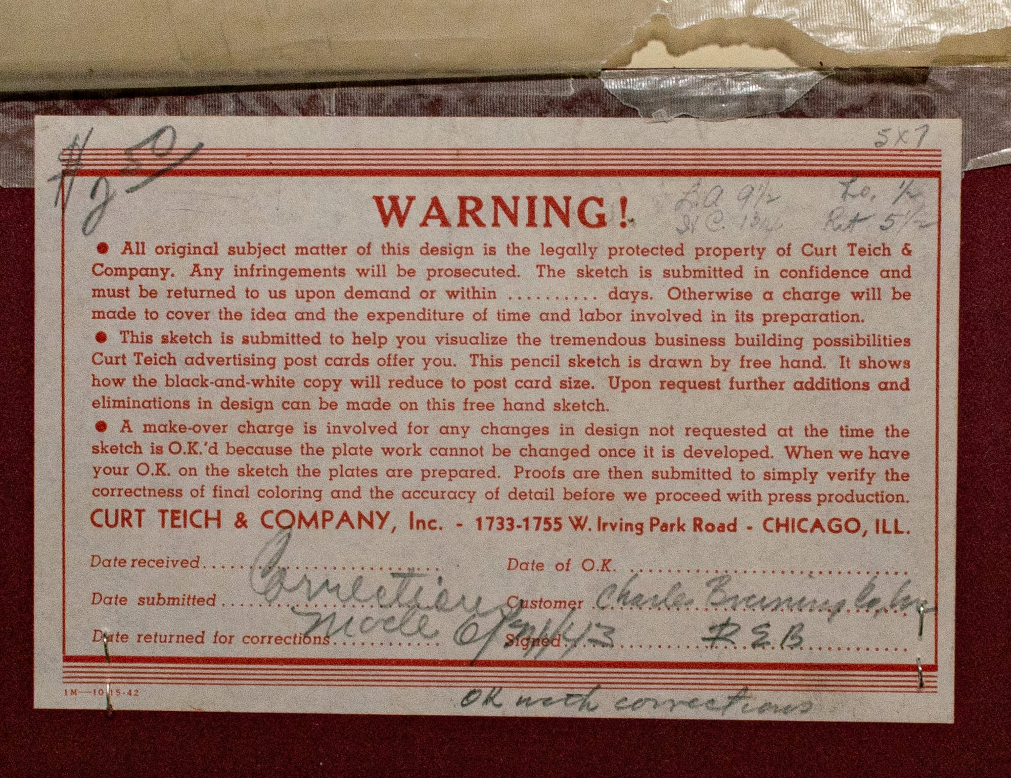 Back of the design sketch | Verso proof | Production order