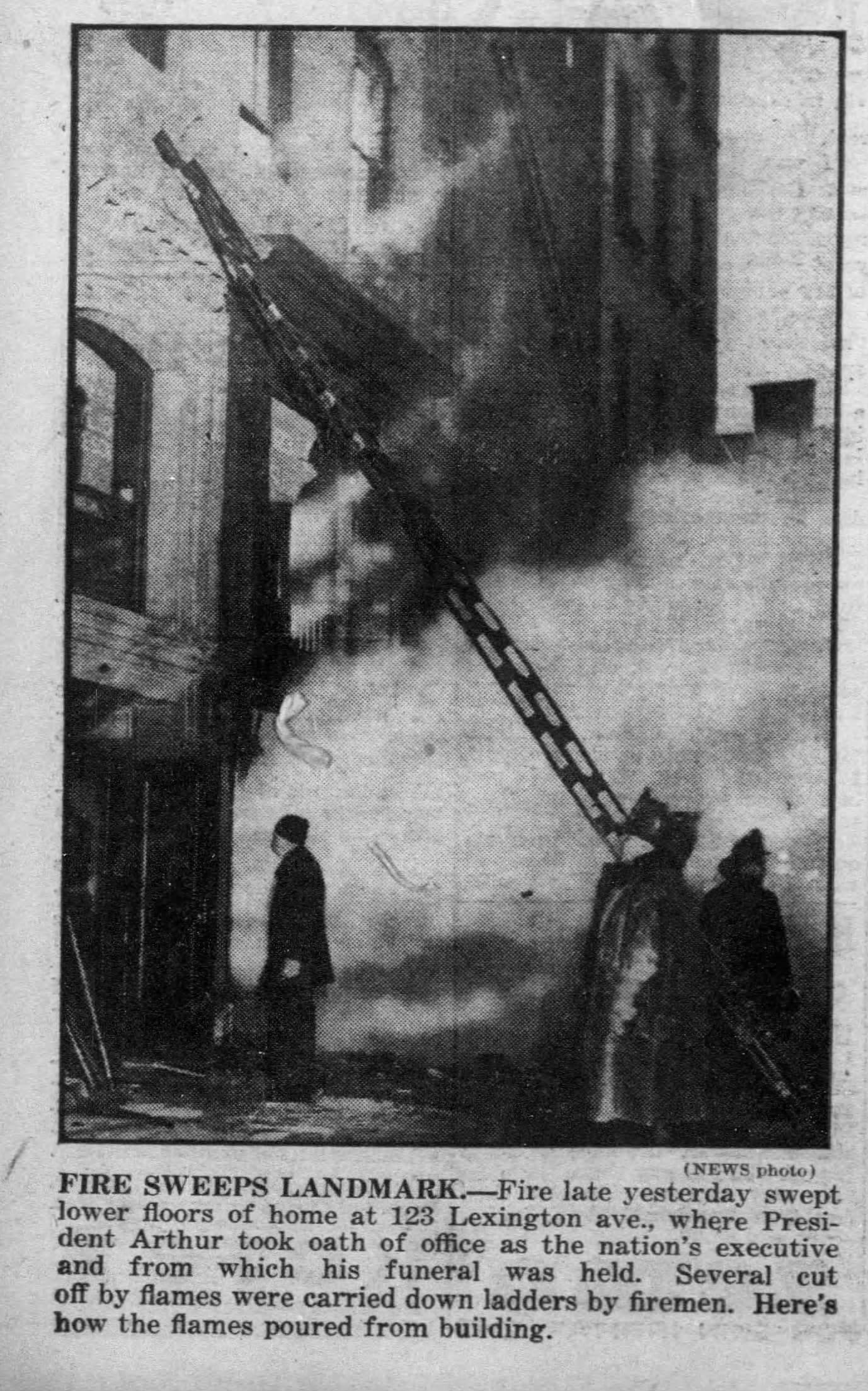 1902 articles about Hearst buying Arthur's old house | Nostalgic 1904 article that uses Hearst's changes to Arthur's home as an example of how "New York sweeps about its well-known landmarks" | Building permit notice, 1902 | Articles about Hearst's plans to turn the building into mixed-use commercial and apartments, 1910