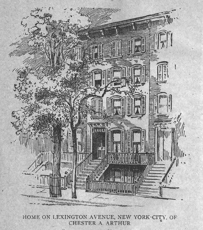 One of the unlikeliest presidents in US history, Chester A. Arthur, moved into this Lexington Ave brownstone in 1863-1864. At the time, he worked as a lawyer and a lobbyist, trading on the connections he had made as Quartermaster General of the New York State Militia during the early years of the Civil War. In the 1870s Arthur, a dandy and a key cog in Roscoe Conkling's vaunted New York patronage machine, parlayed those connections into the landing the most lucrative post in the federal government–Collector of the Port of New York.
