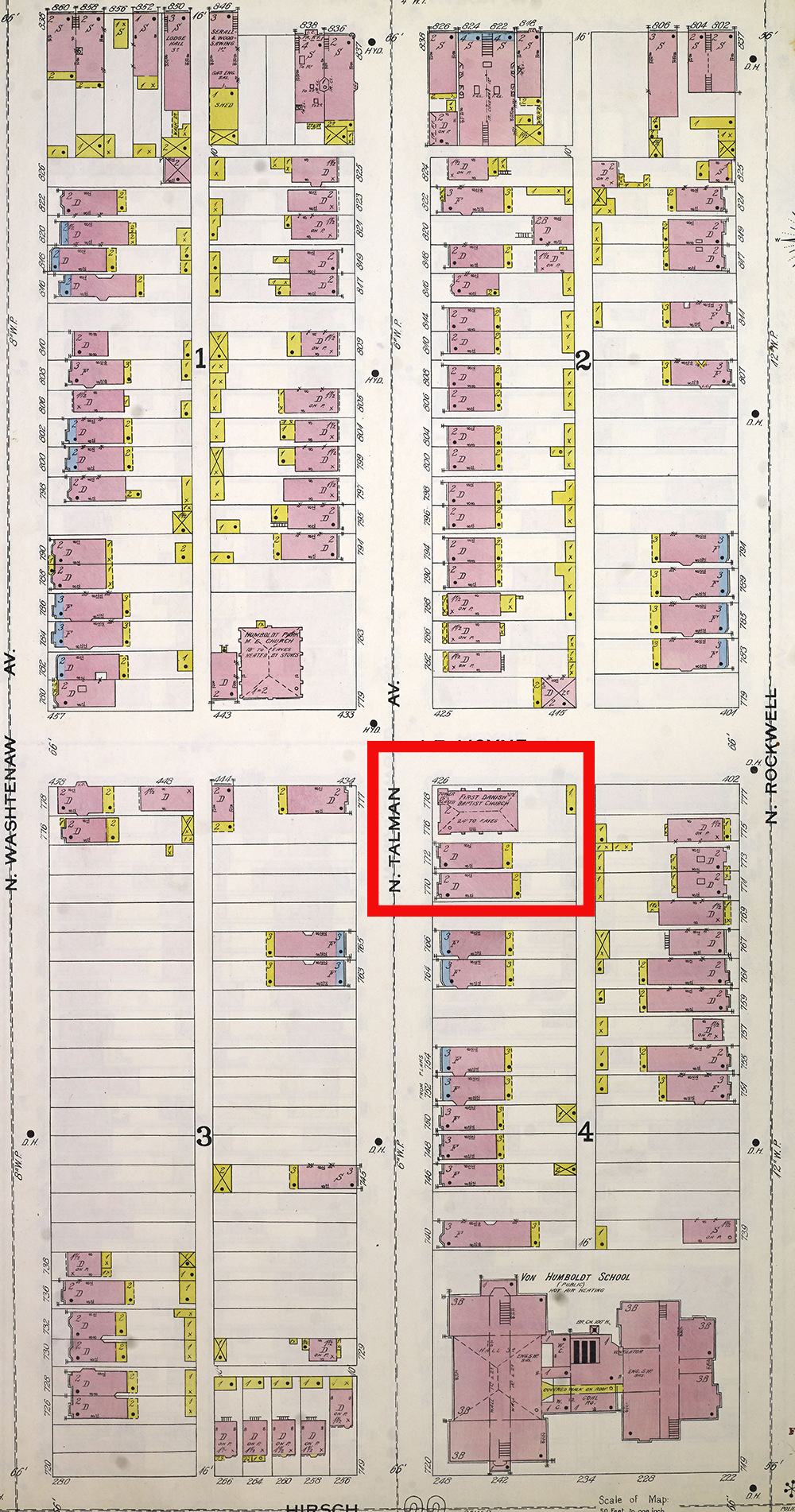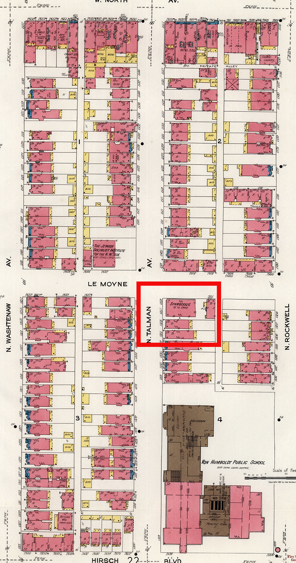 Puerto Ricans made up the next wave of Humboldt Park migration, displaced from “La Clark” in Lincoln Park by urban renewal (Carl Sandburg Village) and Puerto Rico by, well, colonialist renewal (Operation Bootstrap). That discrimination and marginalization obviously extended to media representations as well. The brick building at the corner of Talman & Le Moyne went from the occasional appearance in print as the Danish Baptist Church, to the rare appearance as Congregation Tzemach Tzedek, to complete absence after white flight—the silence is sharp. From the late 1960s on, 1459 N. Talman was ignored and disinvested by city power just like the neighborhood as a whole was.