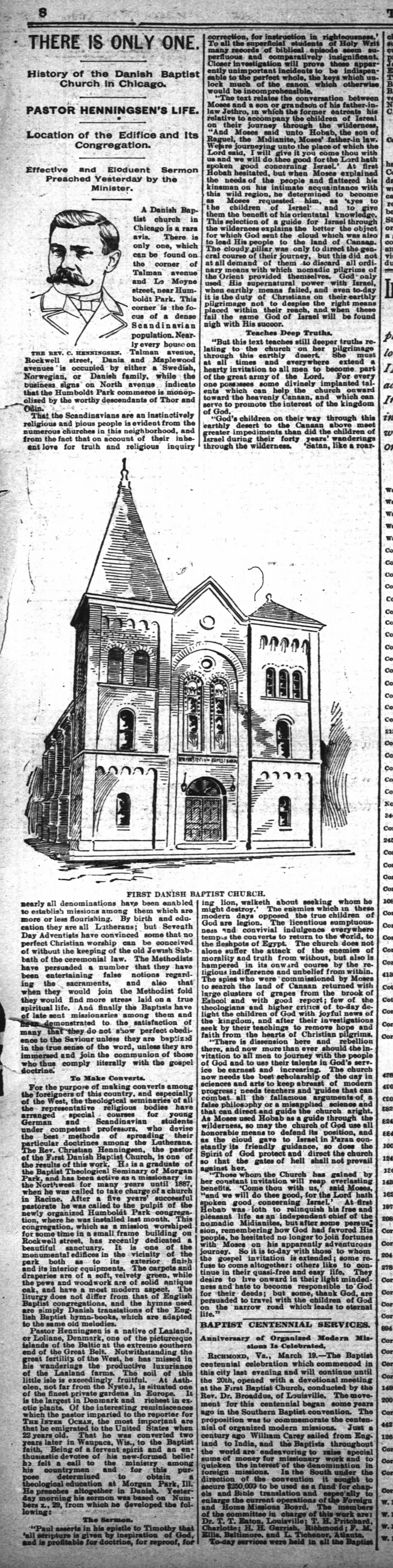 1893 article about the church, "THERE IS ONLY ONE" | 1886 fire insurance map, block nearly entirely vacant | 1892 fire insurance map, block still like 80% vacant | 1893 fire insurance map, Danish Baptist Church built