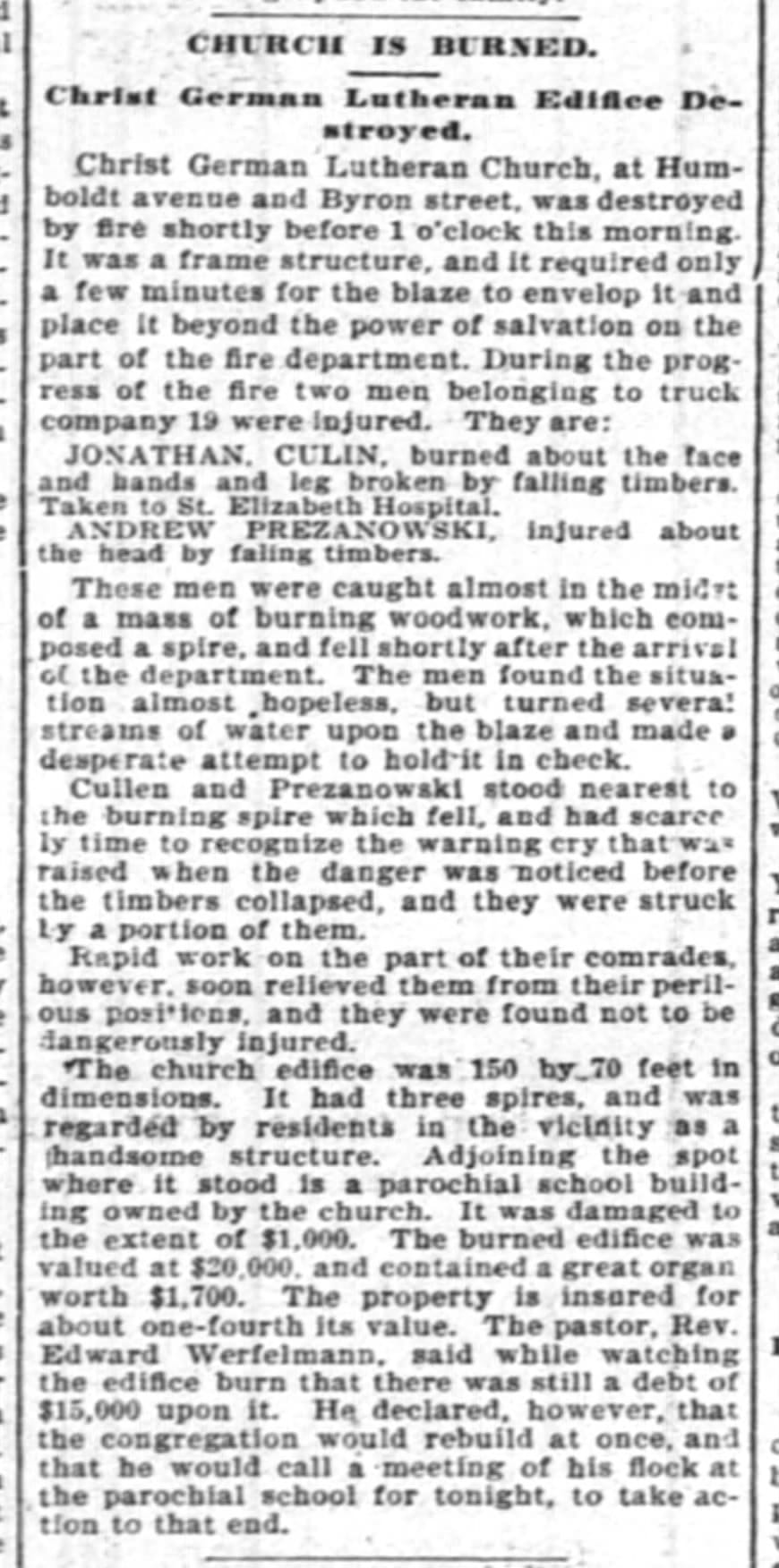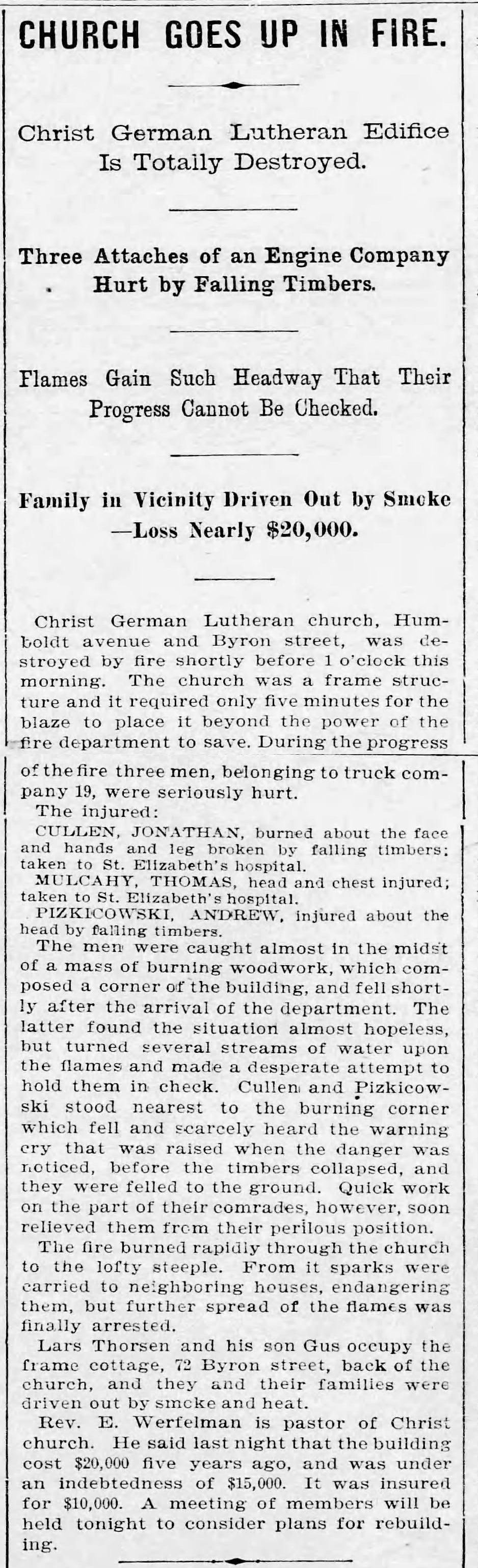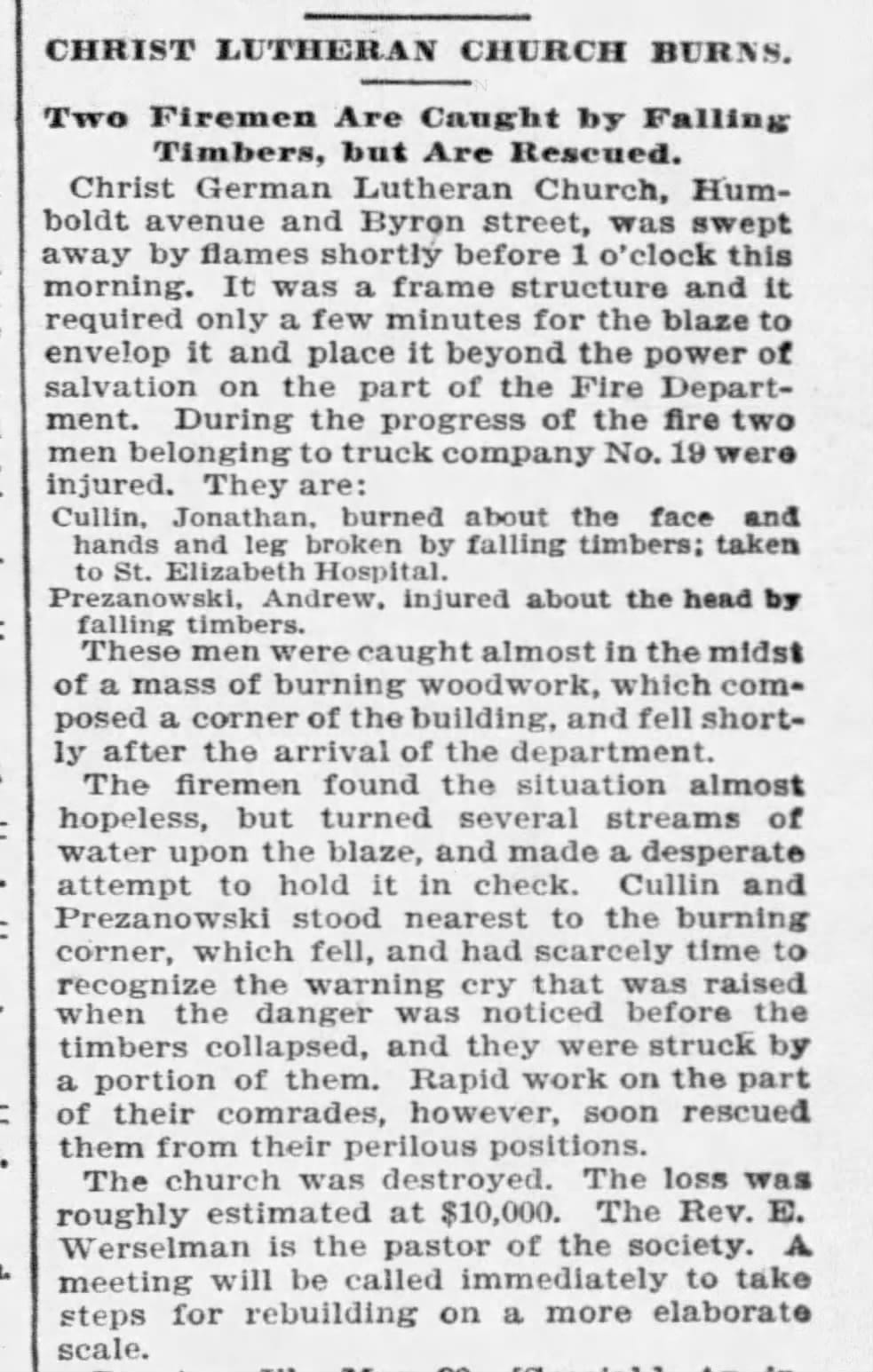 Rev. Werfelmann had bad luck with fire—six years before his church burned down, he set himself on fire.