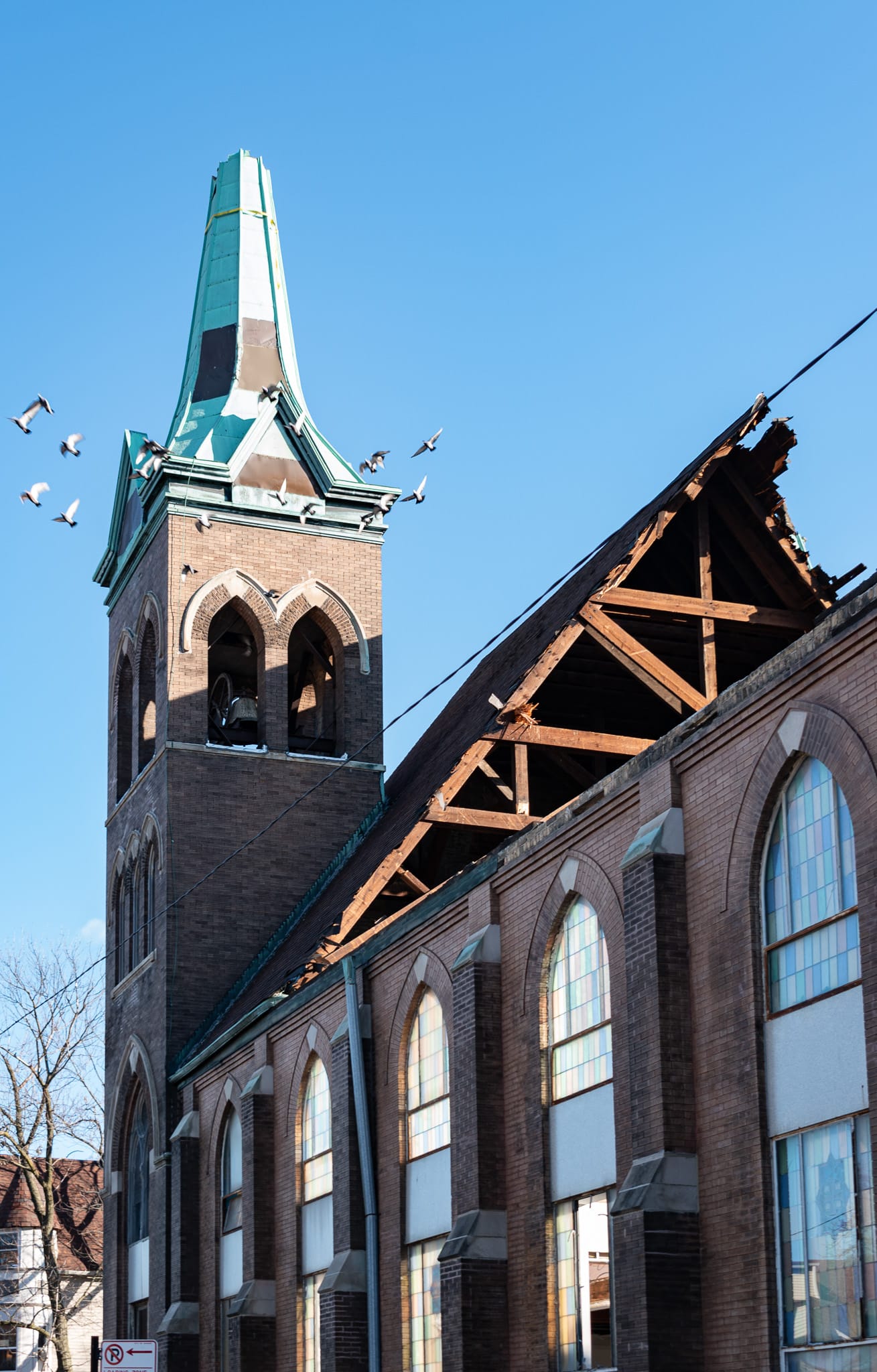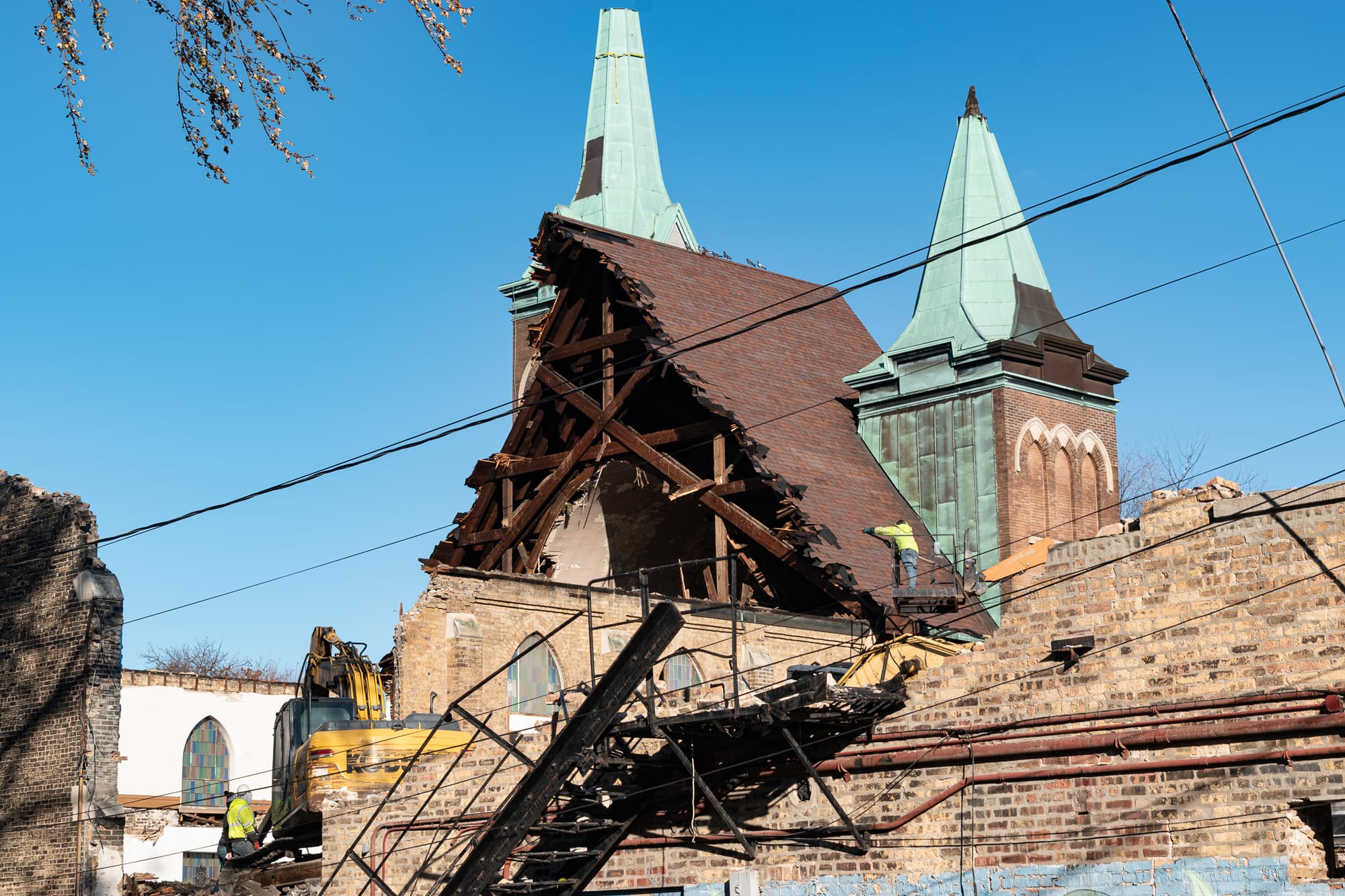 So, what's changed? A silly question for a church building that's actively being torn down, but still, there are a couple things worth pointing out.
