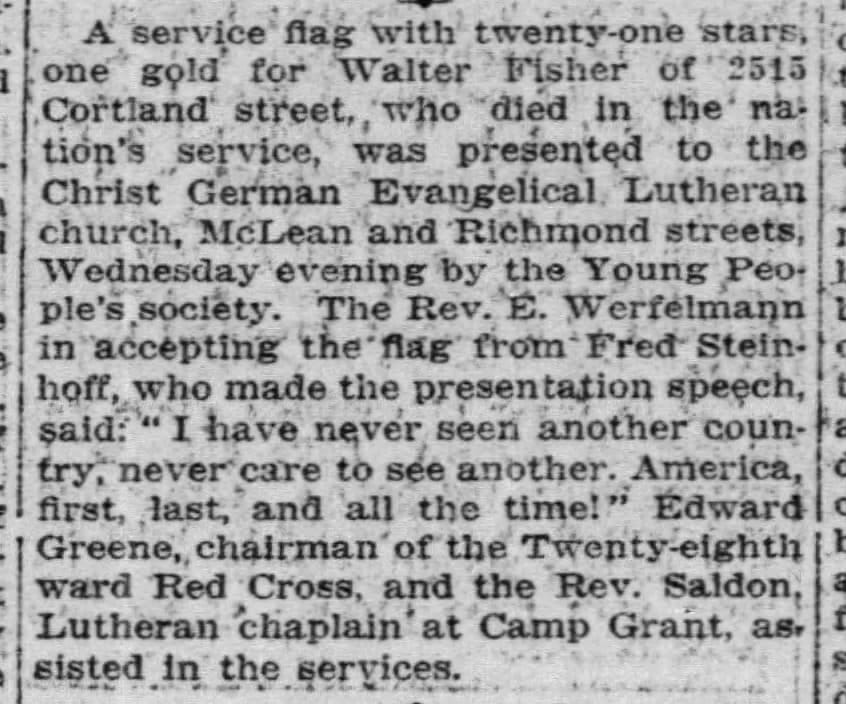 Didn't know where to put these, but thought they were interesting enough to include—particularly that 21 members of the congregation served in World War I (again, it was a German congregation, at a time when there was serious anti-German hysteria in the US).