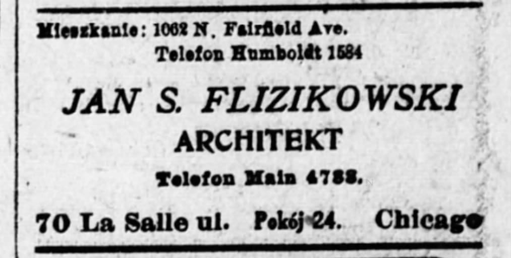 Over the course of his career, John Flizikowski would become the go-to architect for Chicago Polonia—he designed headquarters for both the Polish National Alliance and the Polish Roman Catholic Union of America—so I initially assumed it was his partner, the German-born Otto Kaiser, who bagged this commission.