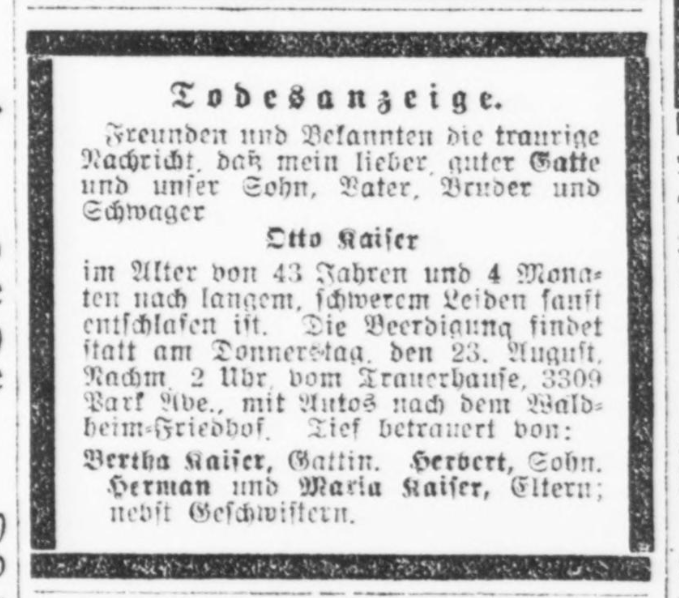 Buildings designed by Otto Kaiser | Kaiser's 1917 obituary, Abendpost, the Internet Archive
