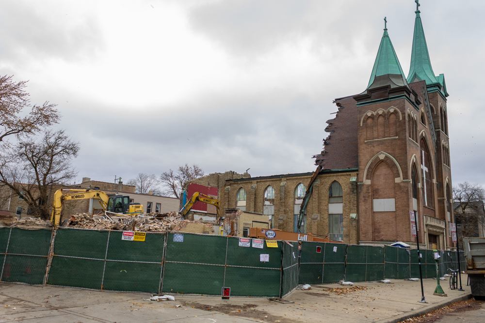 Both the church building and the school were sold this year to Mar Van Development, who plan to build four single family homes on the site. The church building—again, ultimately a pretty regular neighborhood worship place—wasn’t on the Chicago Historic Resources Survey, and you can build single family homes by-right basically anywhere in the city, so permitting, demolition, and construction should proceed quickly here. Which, I guess four homes are better than zero and its a small win for the city to have the land on the property tax rolls for the first time ever, but given neighboring church conversions like “Sanctuary on the Square” on Shakespeare Ave just north of here—denser, more productive, adaptive reuse—this is still kind of a missed opportunity.