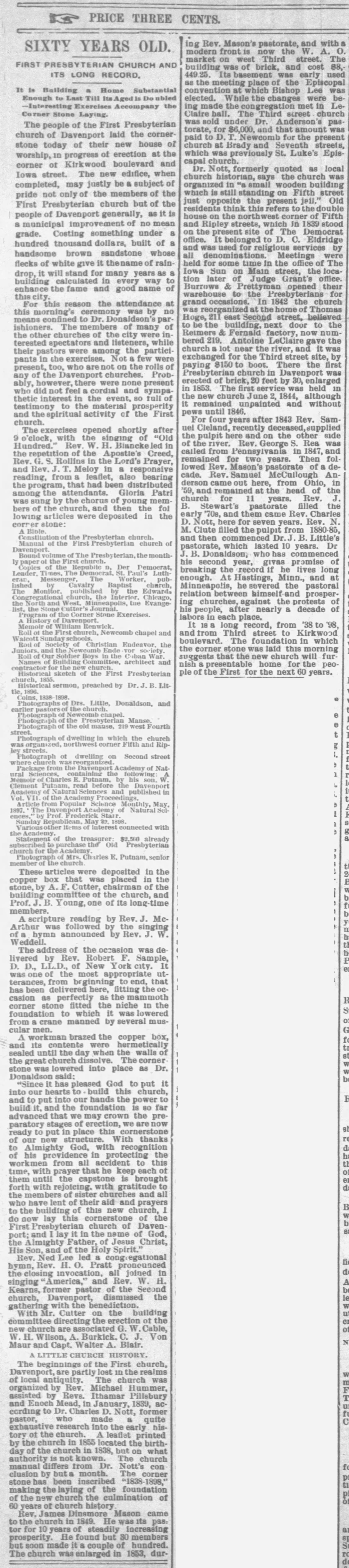 The Bix thing: Agatha Beiderbecke, the jazz great’s mom, played the organ here at First Presbyterian. More than 90 years after his death, Bix Beiderbecke is still a bit of an industry in Davenport, and that apparently extends to the ecclesiastical realm - the congregation here embraces that connection wholeheartedly, which is genuinely quite neat. In addition to their annual Bix liturgy, the congregation participates in Davenpot’s Bix 7 Road Race by handing out coffee, juice, etc. to race spectators.