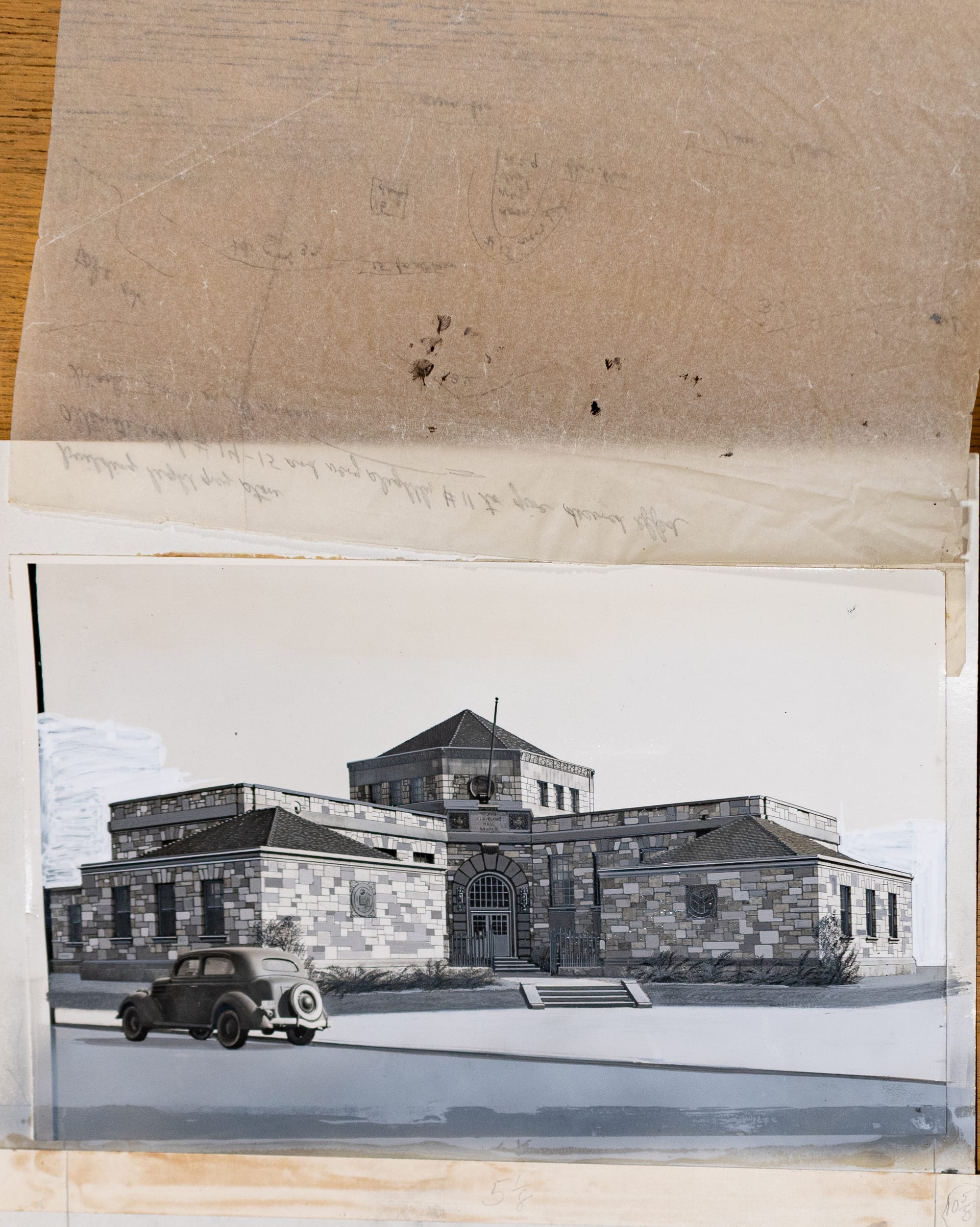 1930 sketch of the library in the Chicago Defender; 1931 building permit; another octagonal Charles Hogdgon-designed building, Temple Sholom in Lakeview
