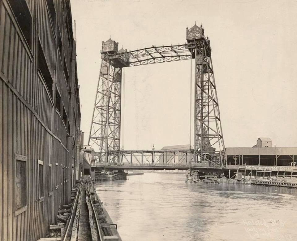 At the time, the vertical lift bridge was an innovation. In contrast to a swing bridge, which requires a central pier that interrupts the channel and presents a navigational hazard (bobtail swing bridges on smaller spans excepted), a vertical lift bridge creates one wide channel. Since there’s no need to clear an area for the span to swing, they also enabled increased dock space that industry could use for loading and unloading. They were also faster than a swing bridge–a lift bridge only needs to be raised just high enough for a ship to pass, rather than a swing bridge that must be fully opened.