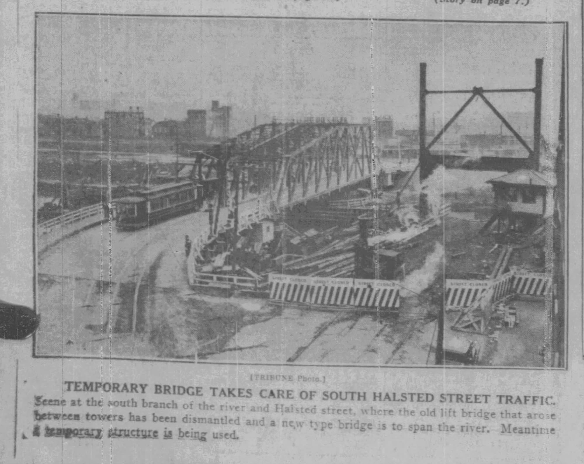 Incapable of handling the heavier loads of personal car traffic and trucks, the city dismantled the Halsted Street Lift Bridge in 1932. The current pony truss bascule bridge opened in 1934.
