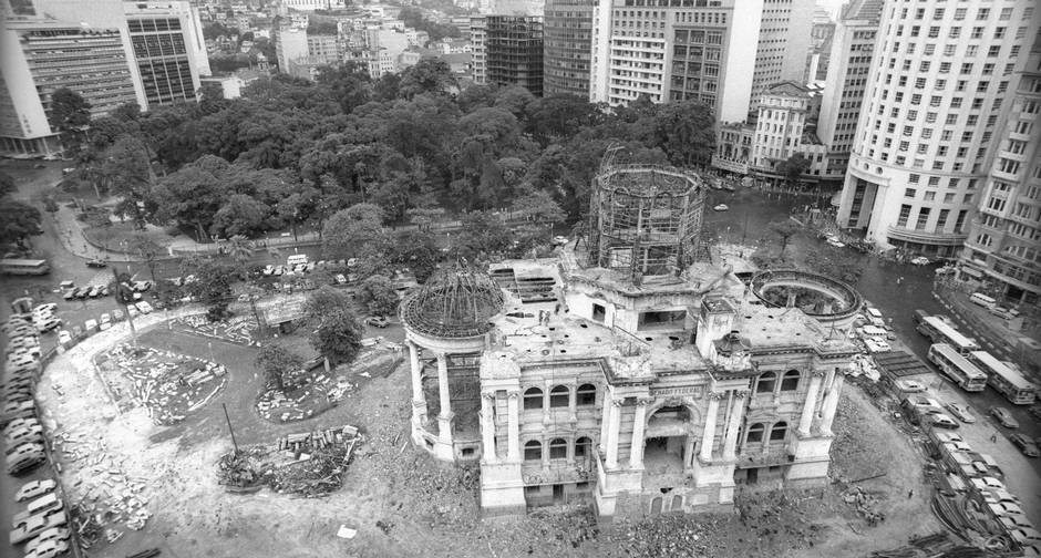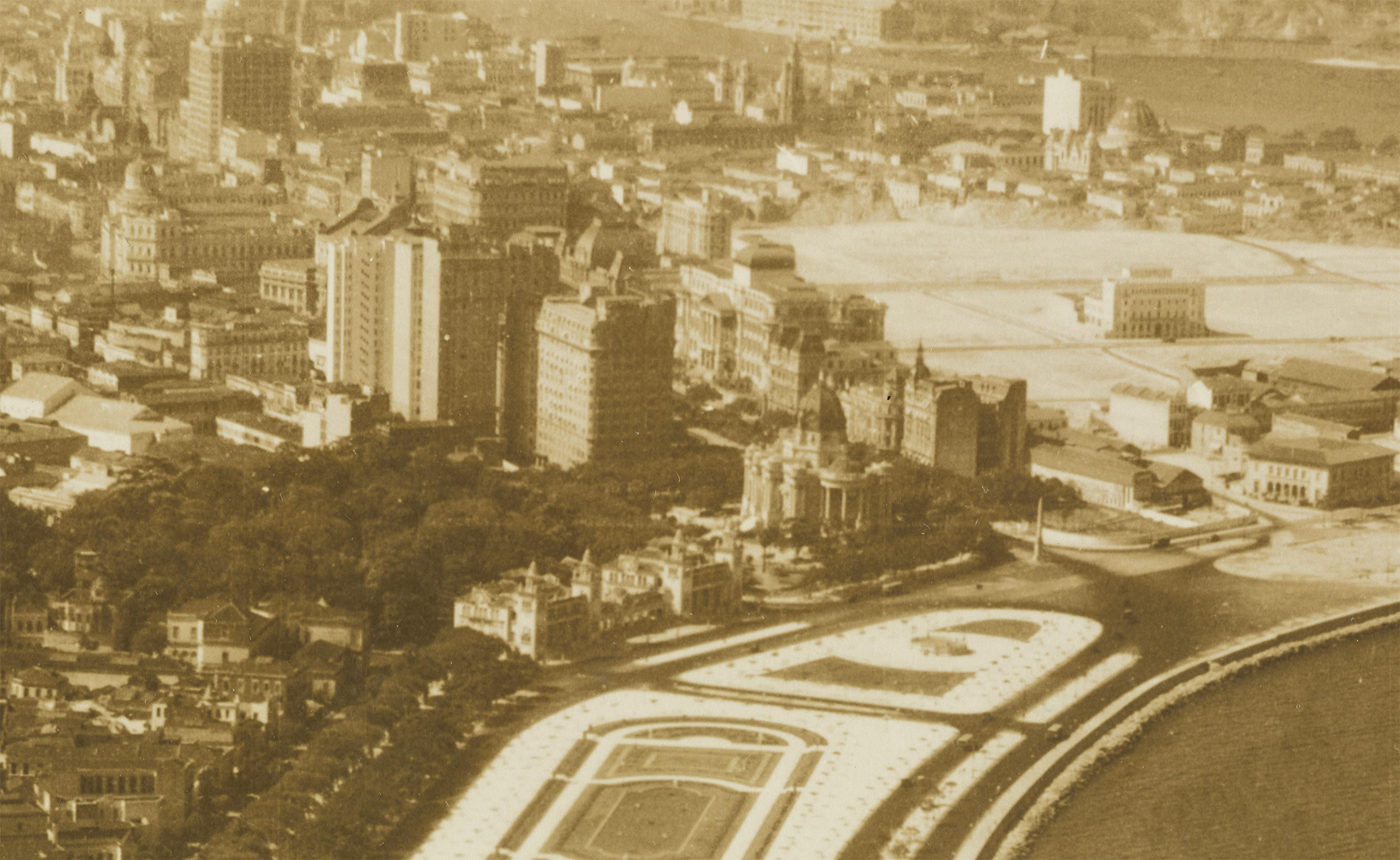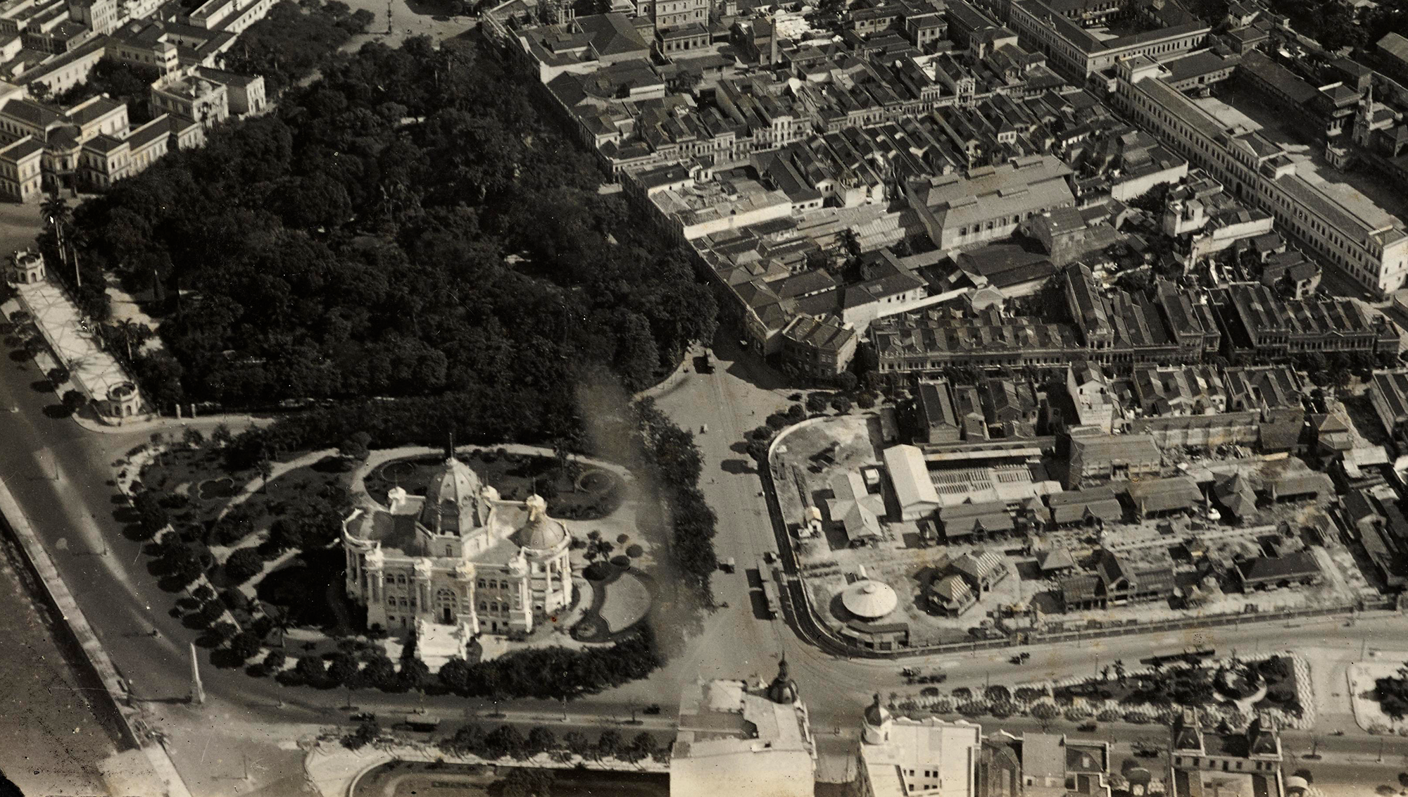 1921 aerial photo, Jorge Kfuri, Instituto Moreira Salles | 1926-1934 aerial, Instituto Moreira Salles via Wikimedia Commons | 1975 demolition of Palácio Monroe | Undated, Mahatma Gandhi Square where the Palácio Monroe stood