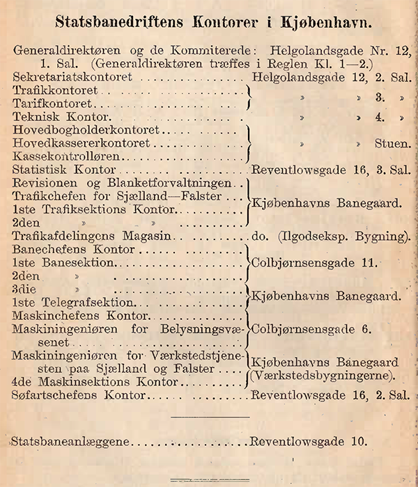 Vaguely historicist with references to Renaissance Revival and classicism, the building is a textbook example of the Vesterbro house style from the era. In addition to the DSB offices, the building appears to have had apartments for rent as well as a small hotel garni. A type of lodging most common in France and Germany, a hotel garni is a B&B on steroids or a stripped-down hotel, depending on your perspective - run as a dedicated commercial hotel, but smaller, no restaurant, not 24-hours, etc.