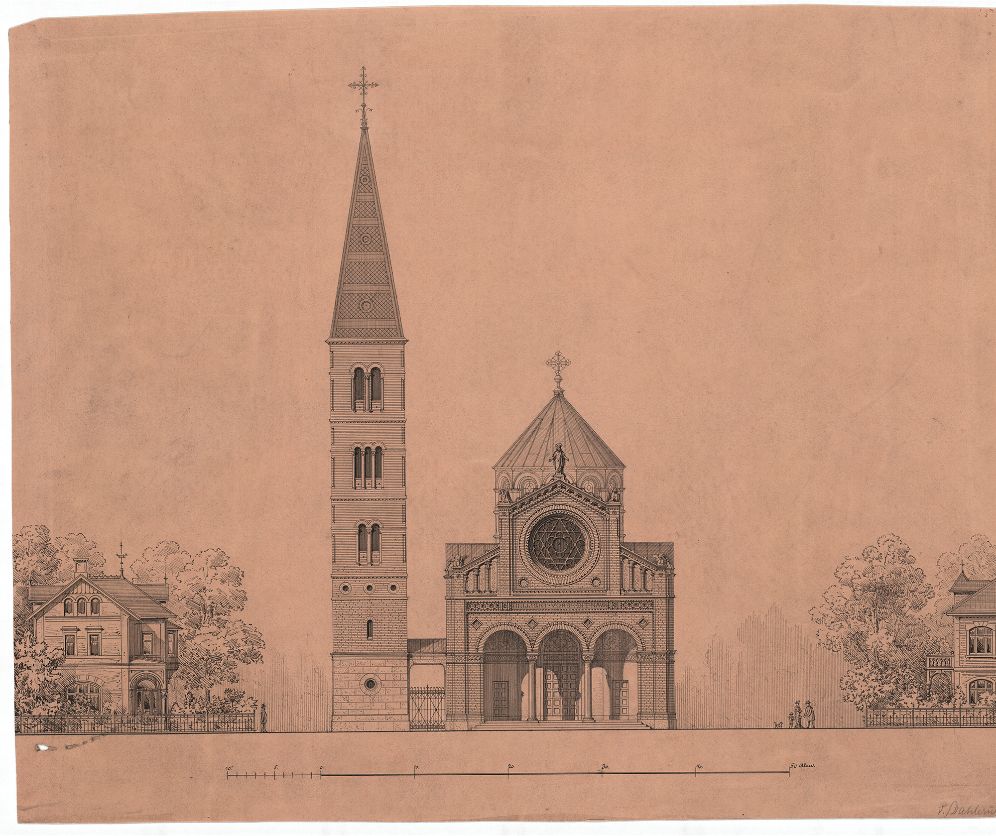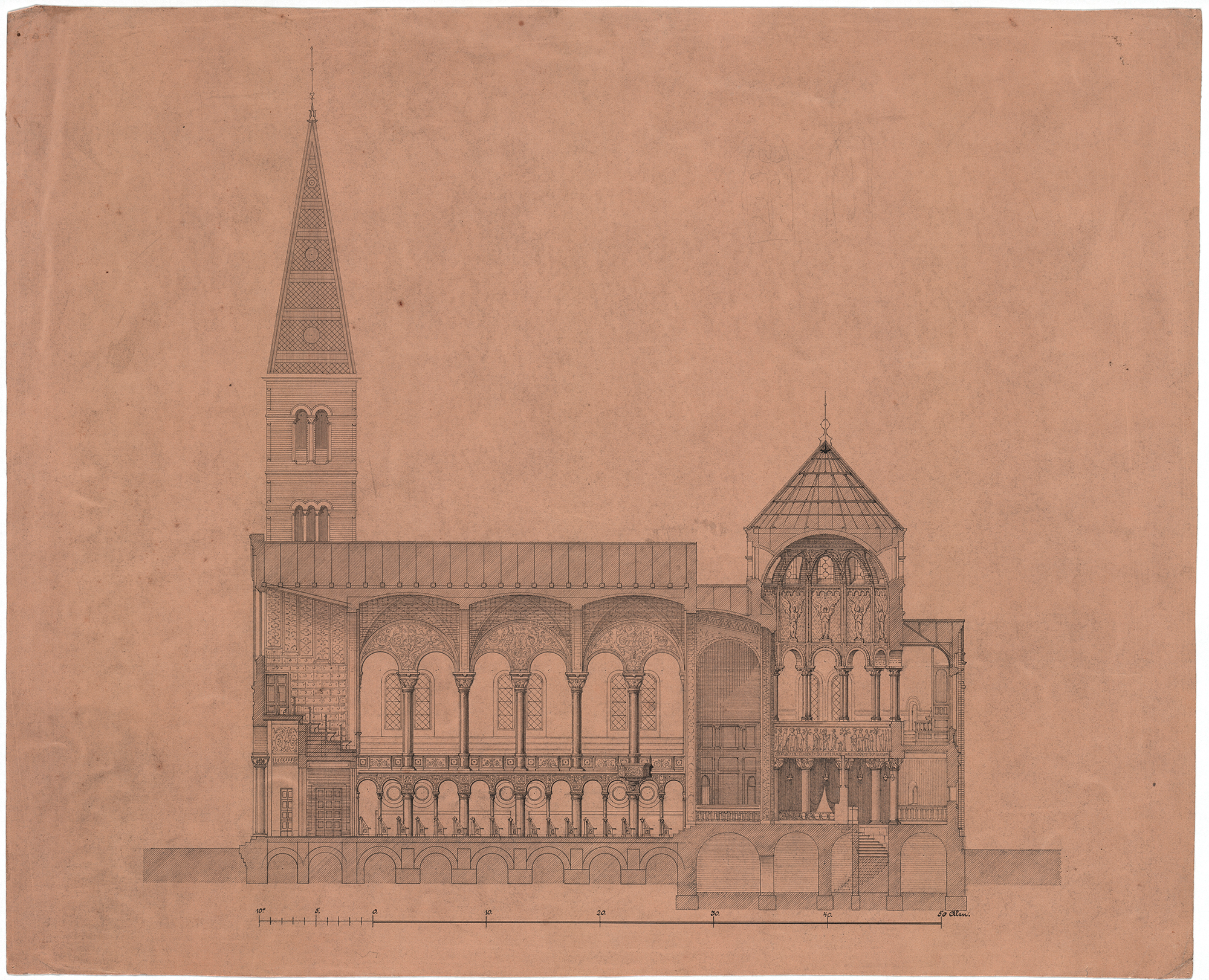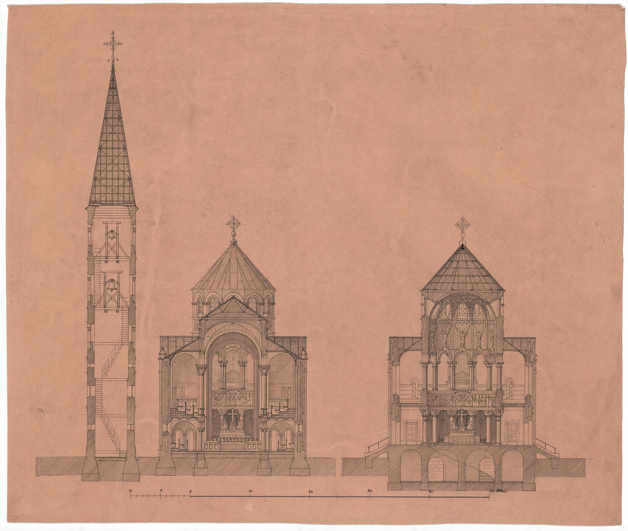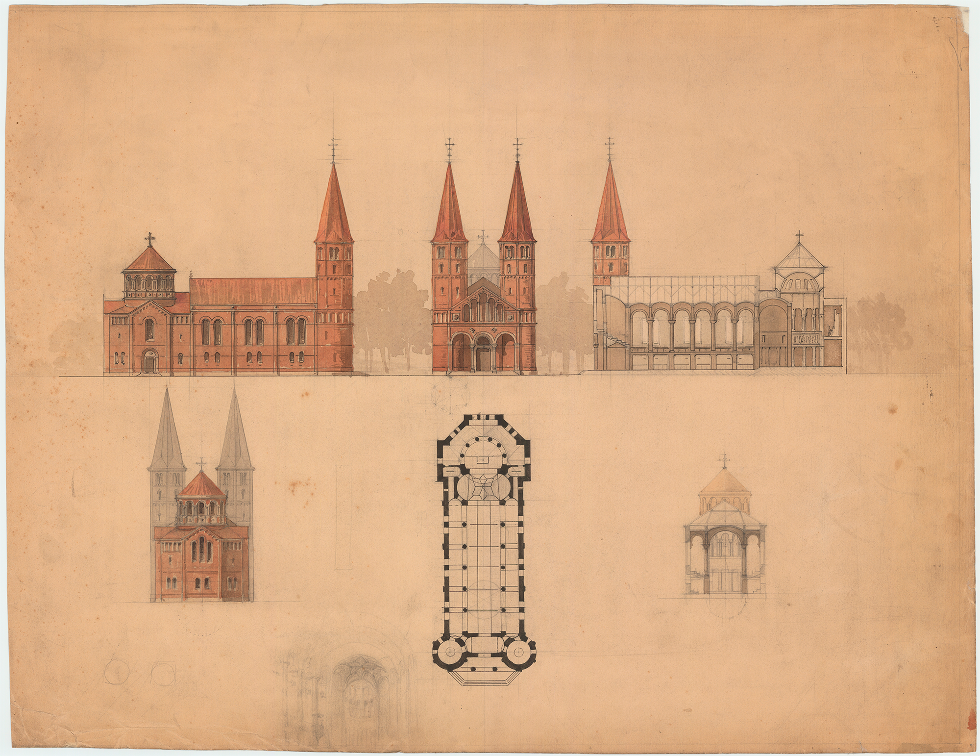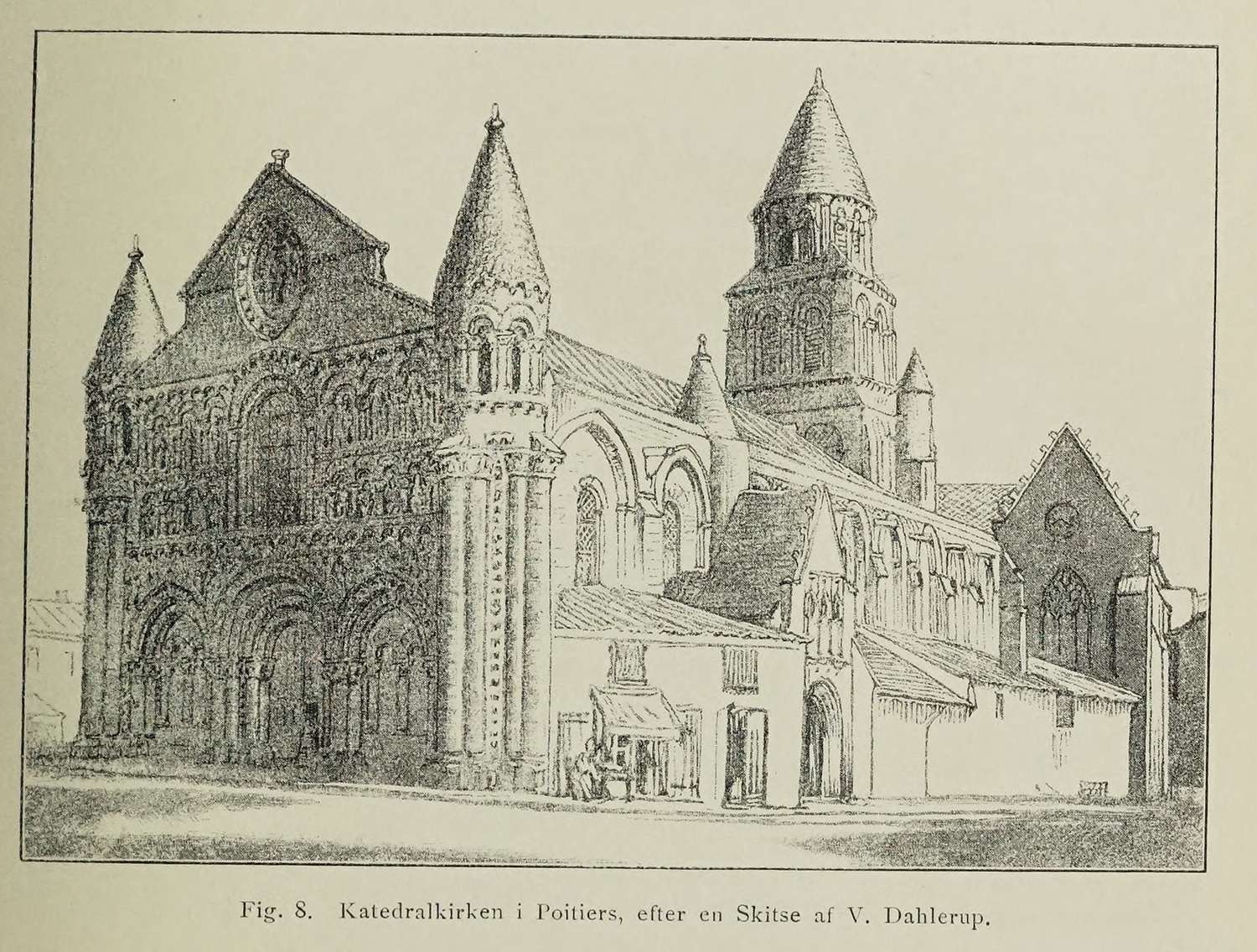 Dahlerup sketch of Notre-Dame-la-Grande in Poitiers, Tidsskrift for kunstindustri | Early studies, Det Kgl. Bibliotek | Sketch, Det Kgl. Bibliotek | Sketch, Det Kgl. Bibliotek | Campanile sketch, Det Kgl. Bibliotek | Sketch from the side, Det Kgl. Bibliotek | Cross-sections, Det Kgl. Bibliotek | Floor plans, Det Kgl. Bibliotek | Hack Kampman sketch, Det Kgl. Bibliotek