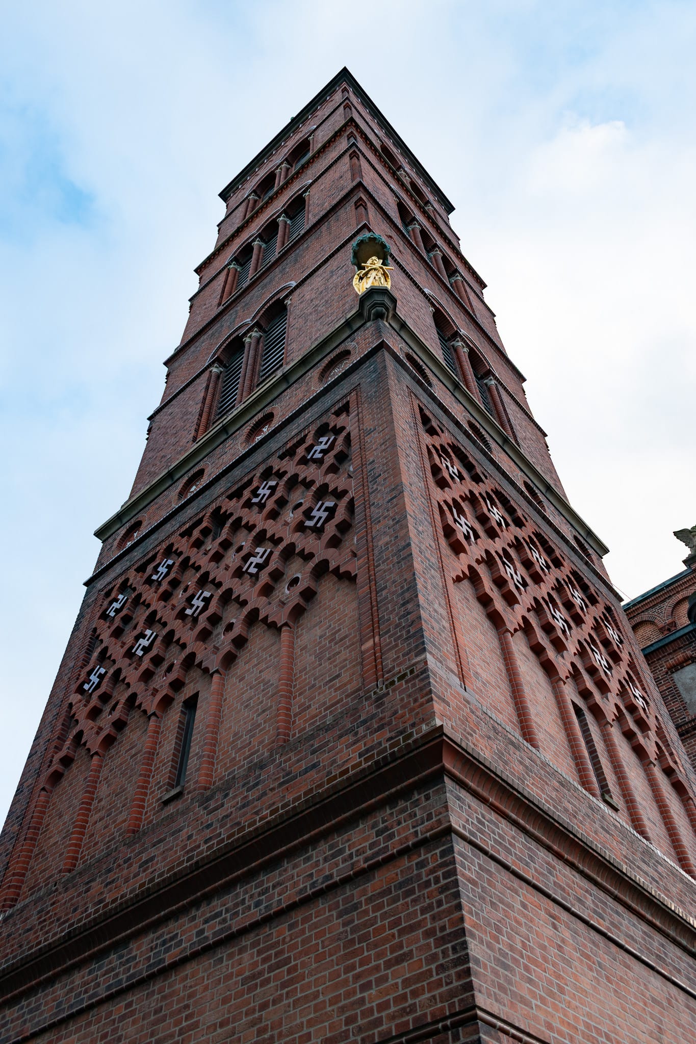 Decades before the Nazis claimed it and ruined it, Carl Jacobsen and Vilhelm Dahlerup were big fans of the swastika—besides Jesuskirken, it also decorates many buildings in the Ny Carlsberg brewing complex.