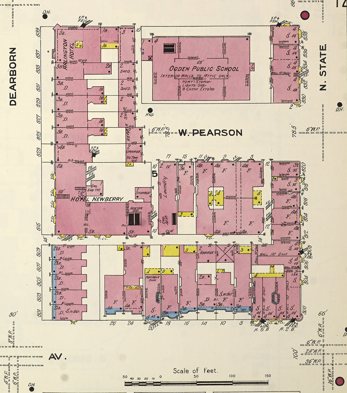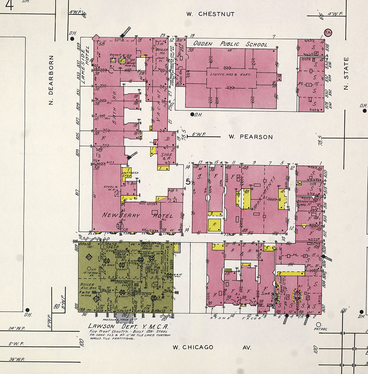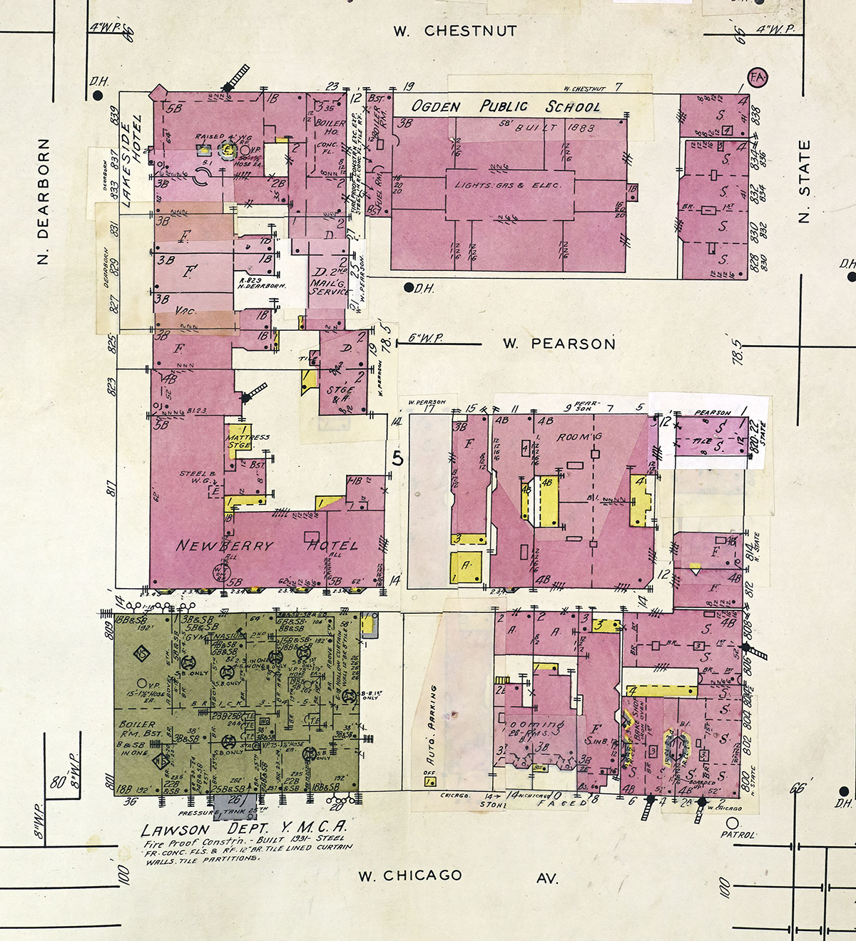 Plus the Sanborn maps, of course. The Lawson YMCA was one of a few hotels on this block, which also had the Newberry and Lakeside. You can also see the parking lots just start to claim surrounding buildings in the 1950 map.