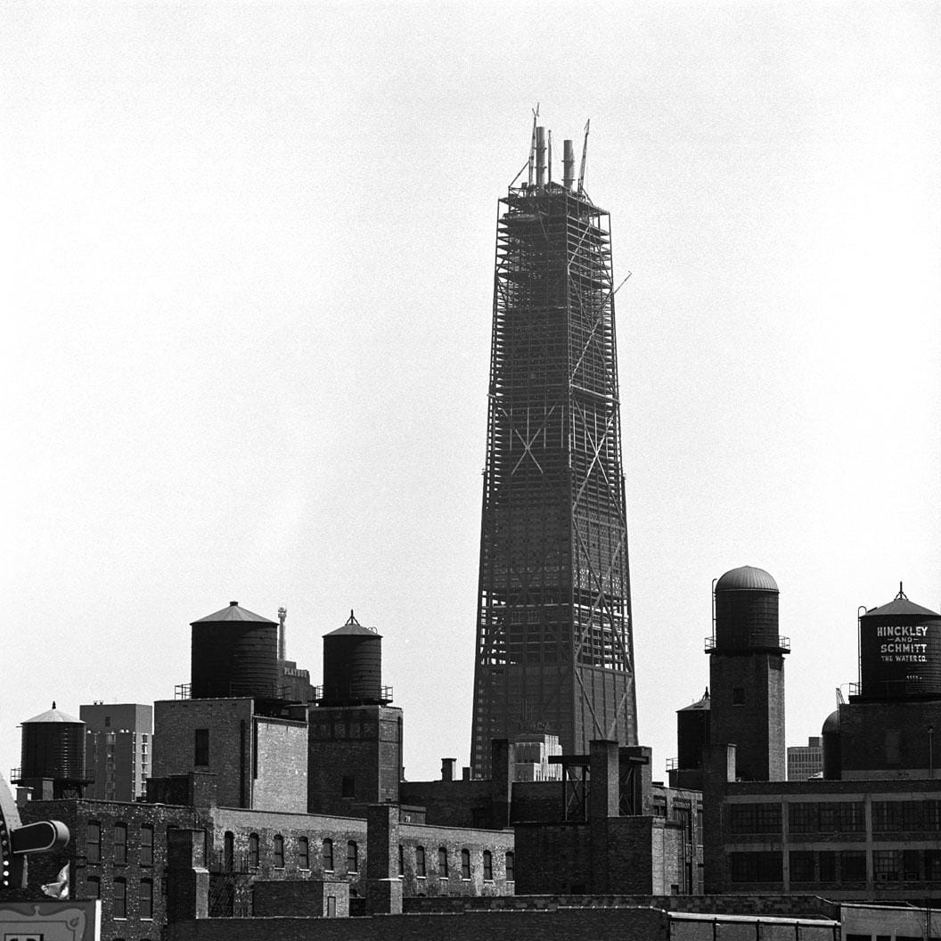 Construction photo, 1940, Haydite Catalog, the Internet Archive | Drinking fountain ad, Architecture, 1932 | Glass ad, Architecture, 1932 | Undated, UIC via Chicago Collections | ~1932, UIC via Chicago Collections | postcard | 1970s, Illinois State Historic Preservation Office | 1969, Richard Nickel, Art Institute of Chicago via Chicago Collections | C. Willem Brubaker, 1976, UIC via Chicago Collections