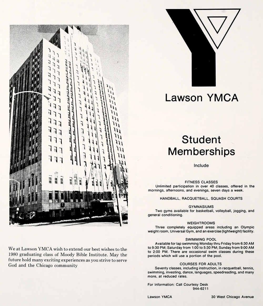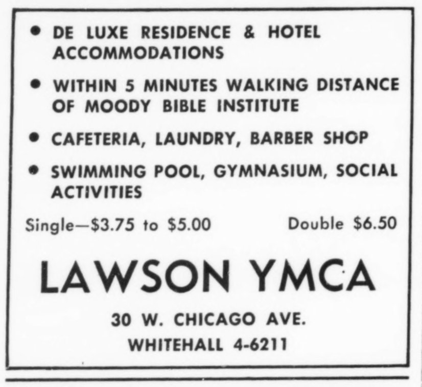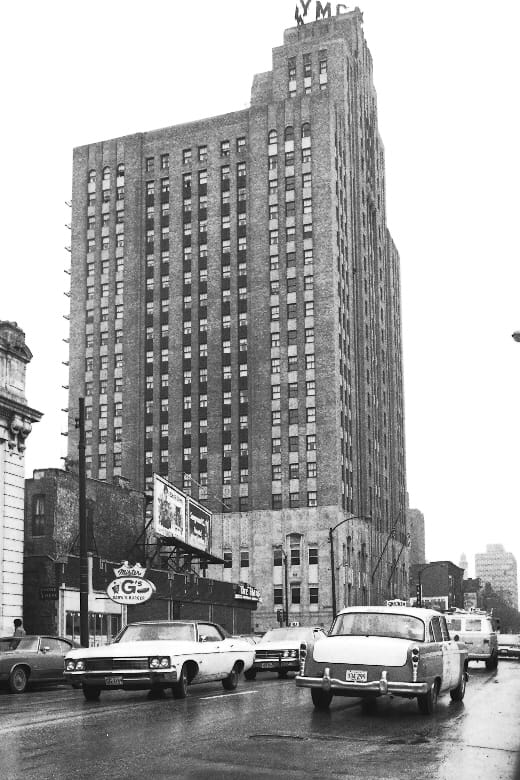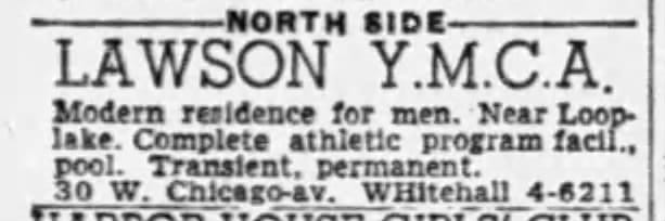 The Lawson YMCA was also a center of gay life in Chicago more generally, especially from the 1940s through the 1970s. Writer Jack Fritscher called it “a sperm-o-rama orgy party from the roof sundeck down through the rooms and toilets” in the 1960s and the Mattachine Midwest newsletter, the monthly publication of Chicago’s first successful gay rights organization, called it “the Lawson Y of infamous memory”. During Gay Pride Week in 1970, the march route intentionally passed the Lawson YMCA as a symbolic nod (as well as the Chicago Avenue police station, underlining the radical politics of a Pride March and the inspiration of Stonewall).