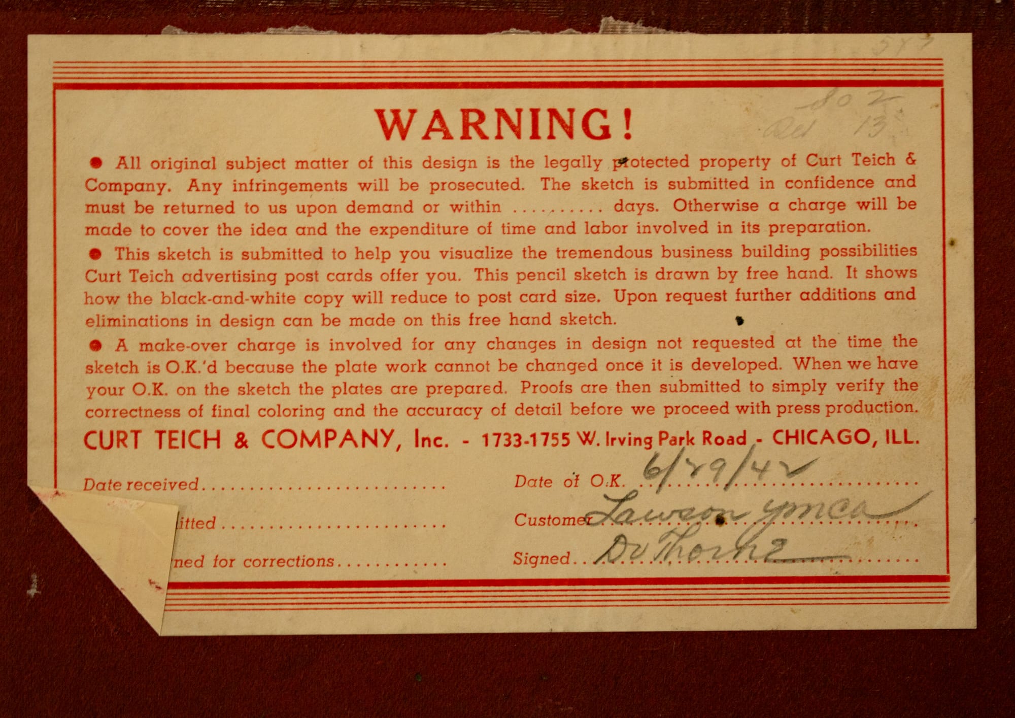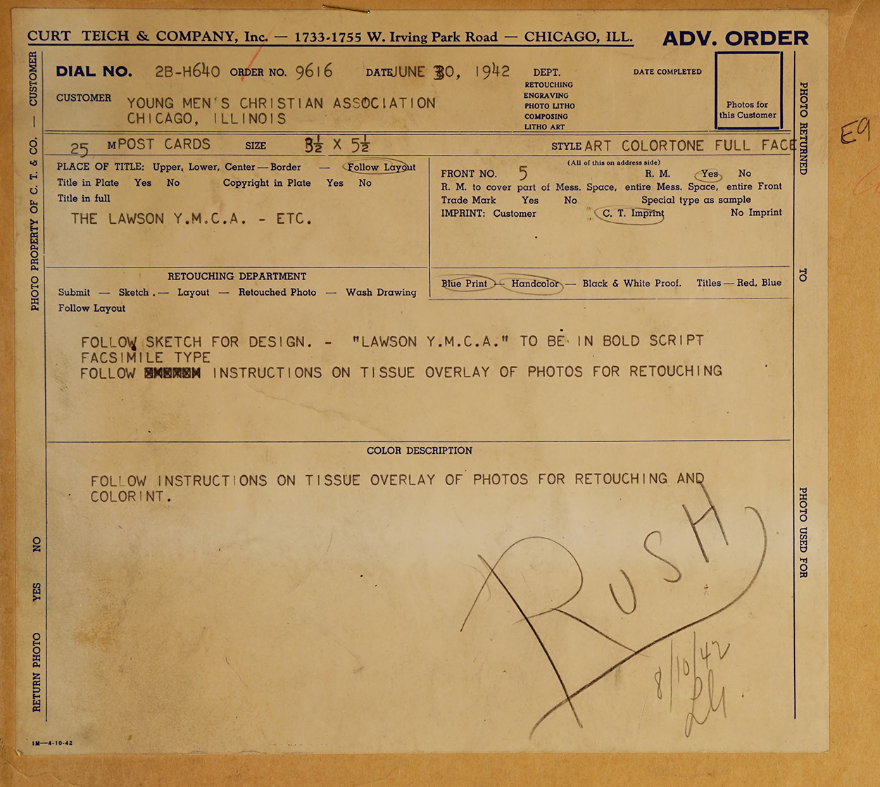 The production file in the Curt Teich Postcard Archive at the Newberry Library, was pretty rich for this one. Containing the materials used to create this postcard, it had the design sketch, some touched up photos, and the mockup of the multi-panel final postcard.