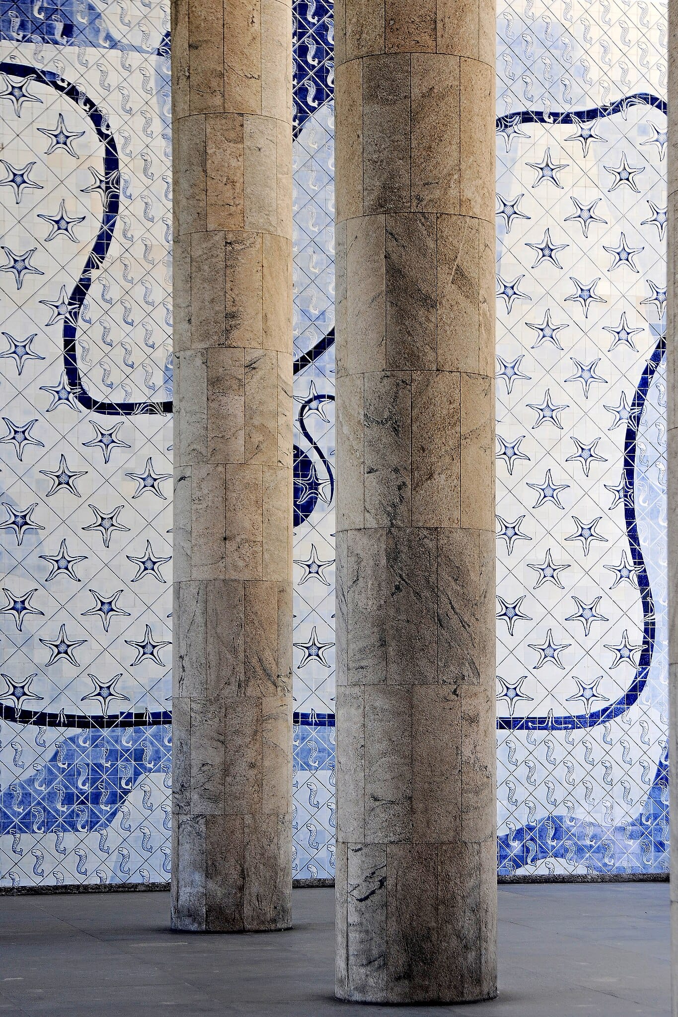 Construction began in 1937, and the building was an icon even before it opened—its inclusion in the Brazil Builds exhibition at MoMA in 1943 had Americans asking whether they’d fallen behind. A slab with a curtain wall, shaded by a brises-soleil, standing on pilotis, and decorated with azulejos—an incredible synthesis of Corbusian and Brazilian modernism, really, like a supergroup coalescing to create a single flawless album that defines an entire genre. The end result also embodies Le Corbusier's five points of architecture: pilotis, a free ground-plan, a free façade, horizontal windows, and roof gardens (here, accentuated by those delightfully nautical blue tanks on top).