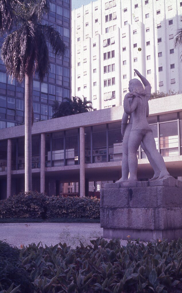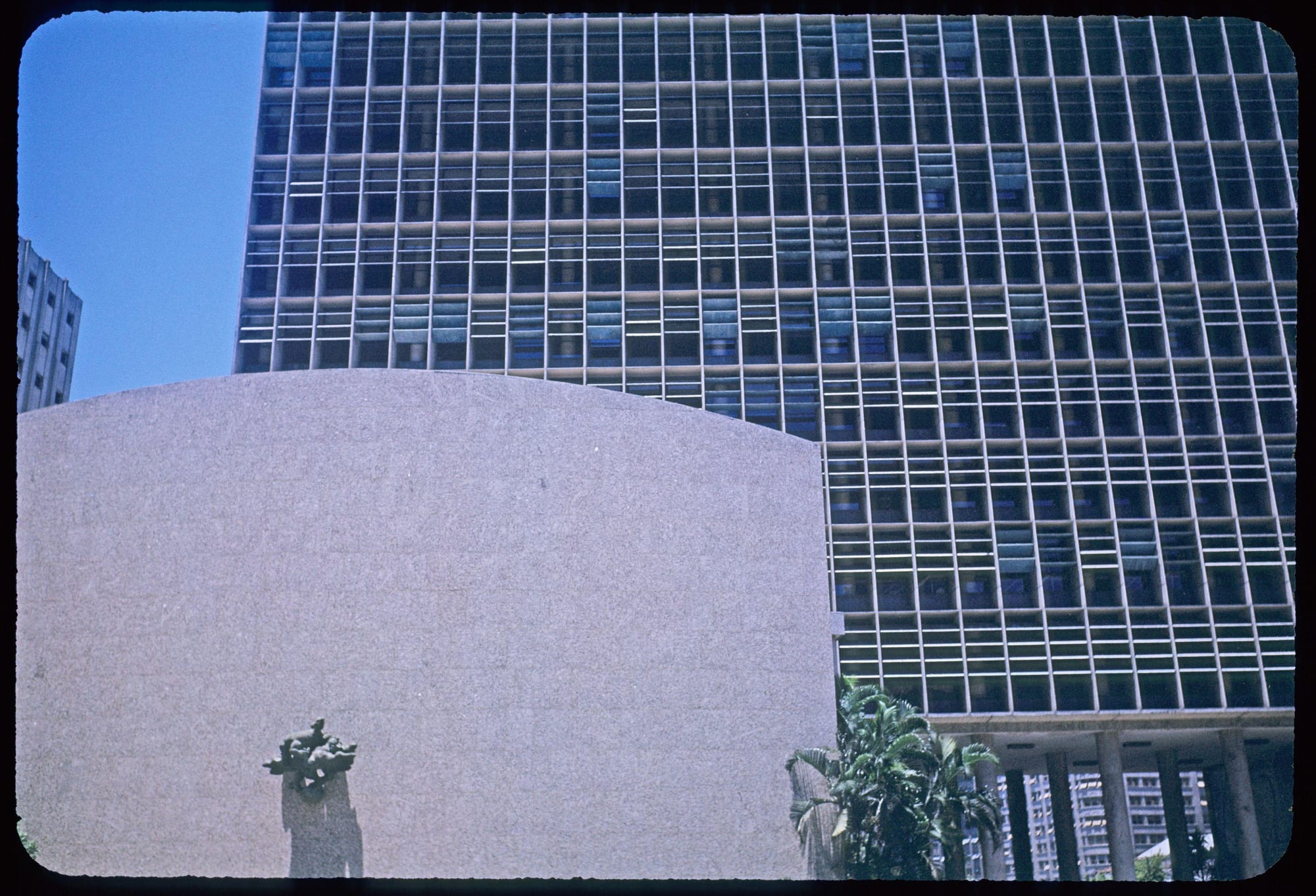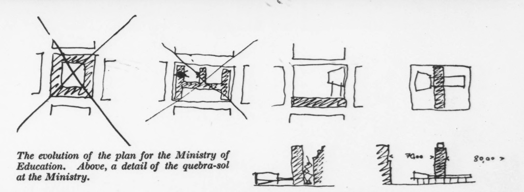 Le Corbusier visited Rio in 1936 for a short but incredibly influential visit. He ran roughshod over the project brief—pushing to move the building to a waterfront site the government didn’t own, among other things—but the back-and-forth between the young Brazilian modernists and the venerable European modernist galvanized the creative process, with Niemeyer crediting Le Corbusier’s presence with giving Brazilian group the “liberty and the creative force it needed”.