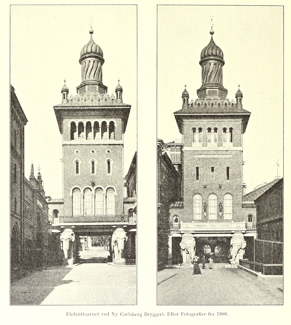 Dahlerup sketched the idea for the elephants, artist Nilaus Fristrup crafted the models, and then Danish sculptor Hans Peder Pedersen-Dan produced it, working for stonemasons Hans & Jørgen Larsen. H.P. Pedersen-Dan had an influential career himself. In addition to Carlsberg’s famous elephants, he did the Little Horn Blower statue outside Copenhagen City Hall as well as the original Holger Danske figure that was later recast and placed under Kronborg Castle.