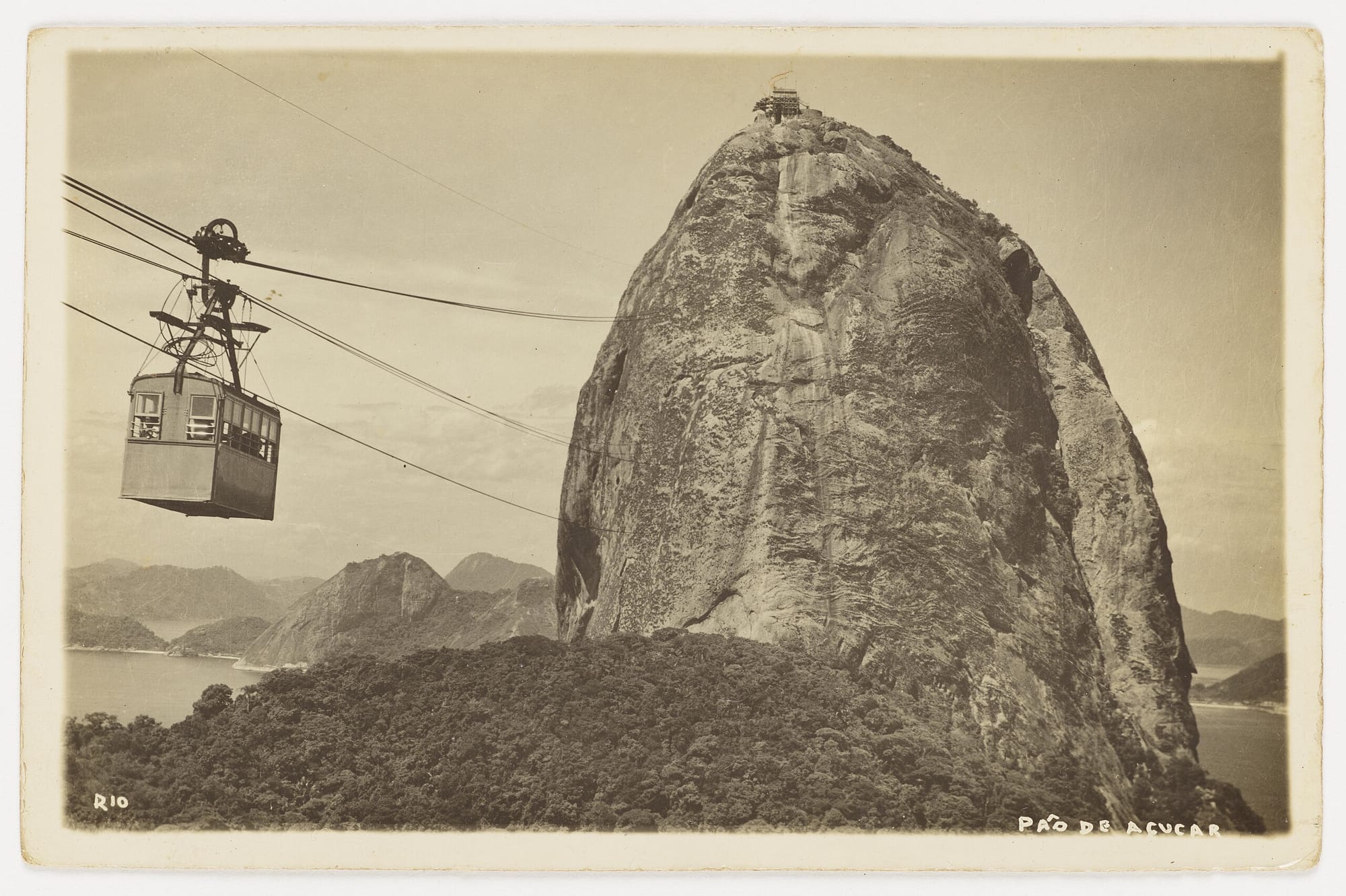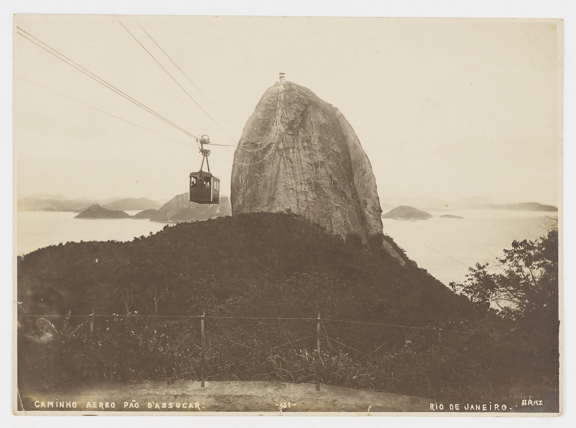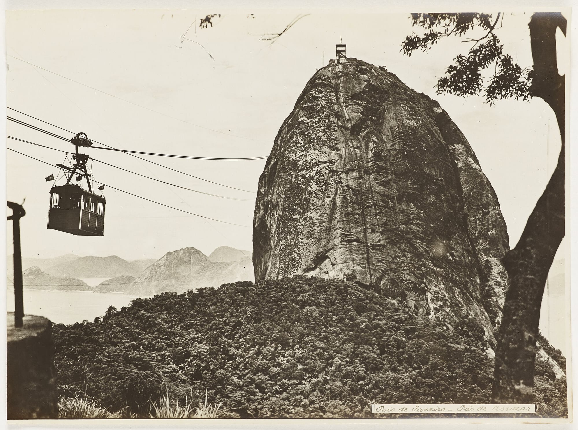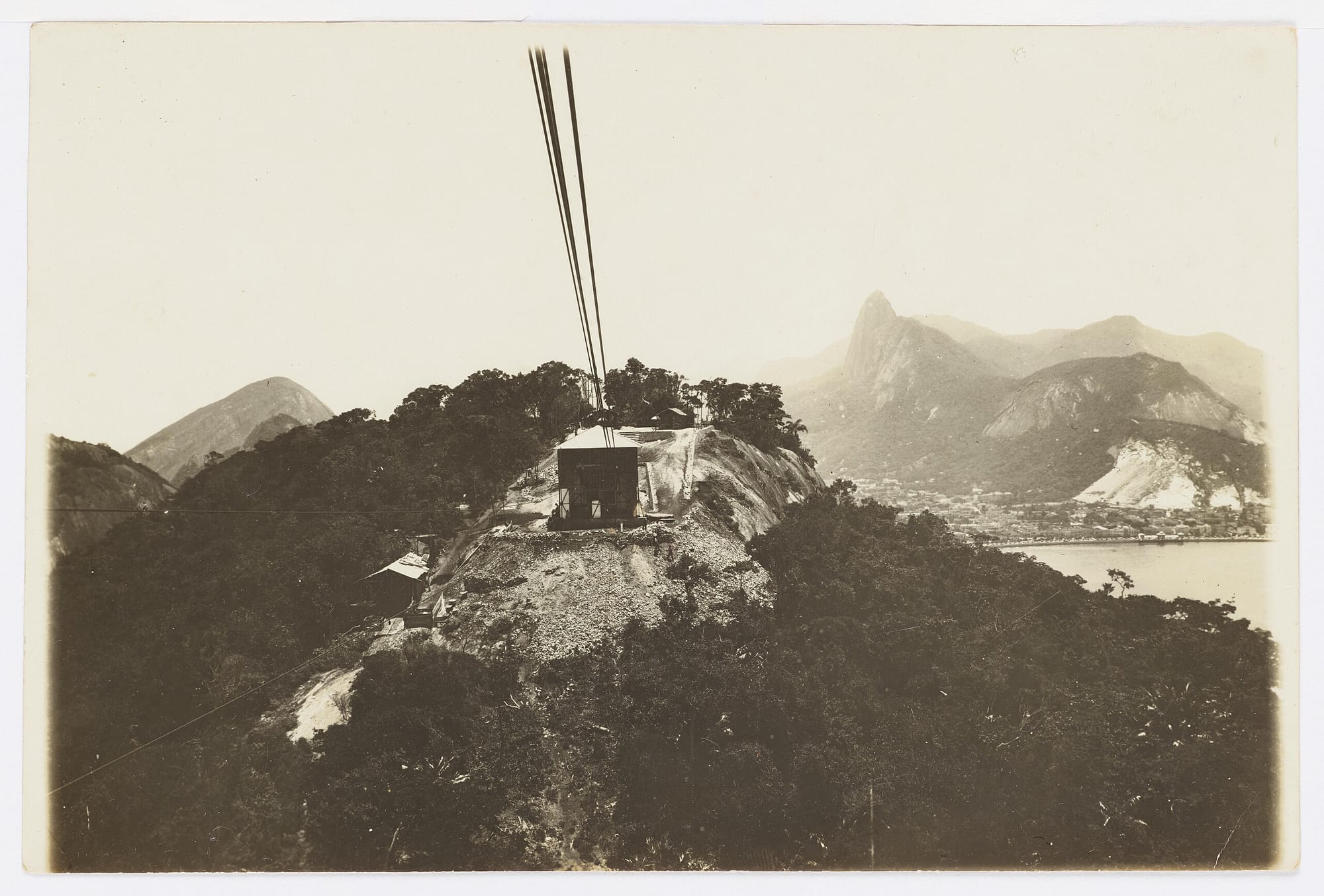 A bornhardt—a dome-shaped bare rock formation–-made up of augen gneiss, Sugarloaf (Pão de Açúcar) is the gateway to Guanabara Bay and one of the main symbols of Rio de Janeiro. For the first couple centuries of Rio’s existence, Pão de Açúcar stood isolated at the entrance to the bay—important to navigation and the military, but otherwise quite removed from early urban development. Beginning with the opening of a military school at Praia Vermelha in the mid-1800s, development plans accelerated for the area around Morra da Urca, the nearest hill to Pão de Açúcar, culminating in the Brazilian National Exposition of 1908. Commemorating the centenary of the opening of the ports of Brazil, some Brazilian states erected pavilions. Augusto Ferreira Ramos, involved because of his work in the coffee industry, helped organize São Paolo’s, and his time spent on the expo grounds at the foot of Morro da Urca and in the shadow of Pão de Açúcar inspired him to propose an aerial tramway connecting the beach, Morro da Urca, Morro da Babilônia, and Pão de Açúcar.