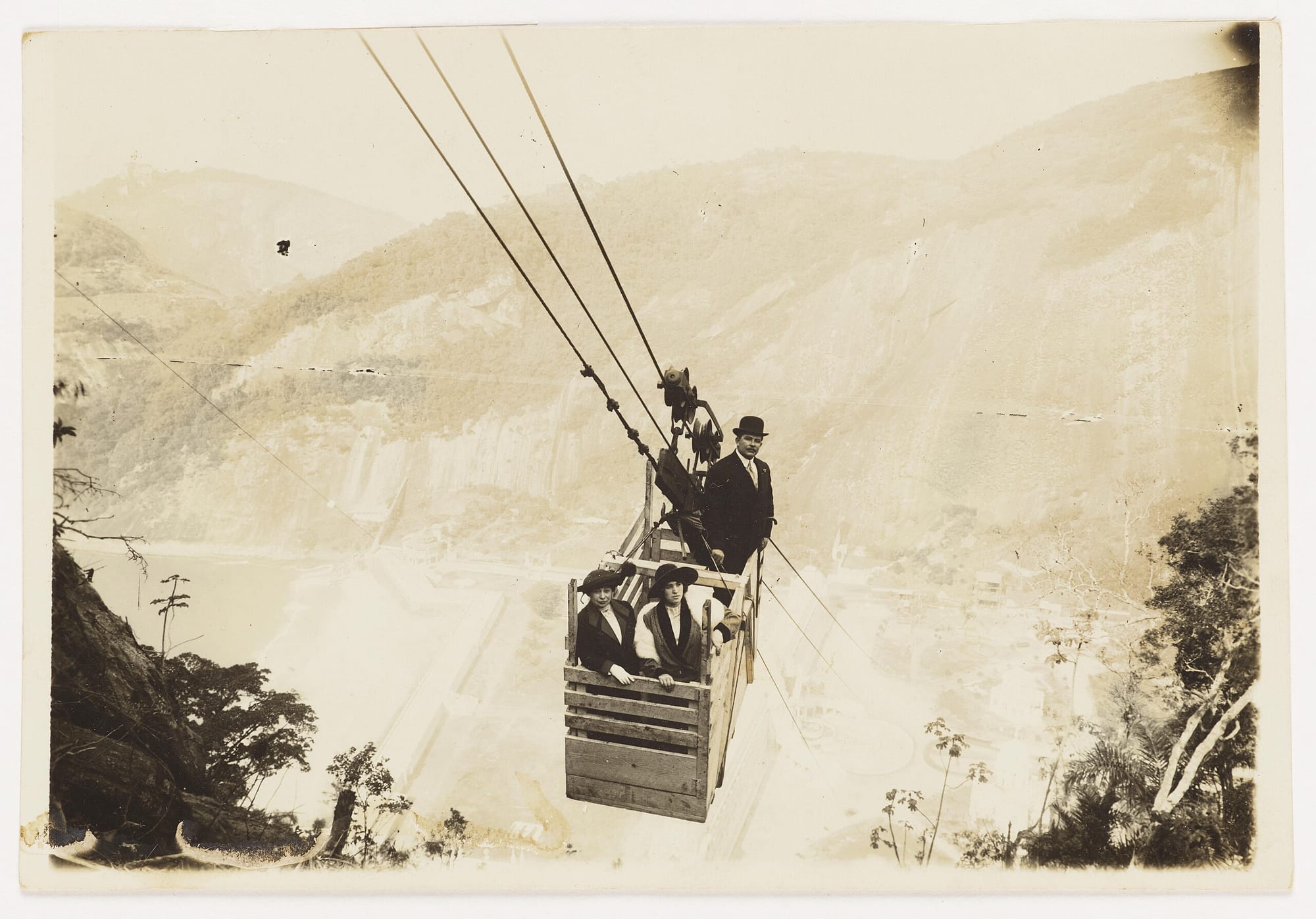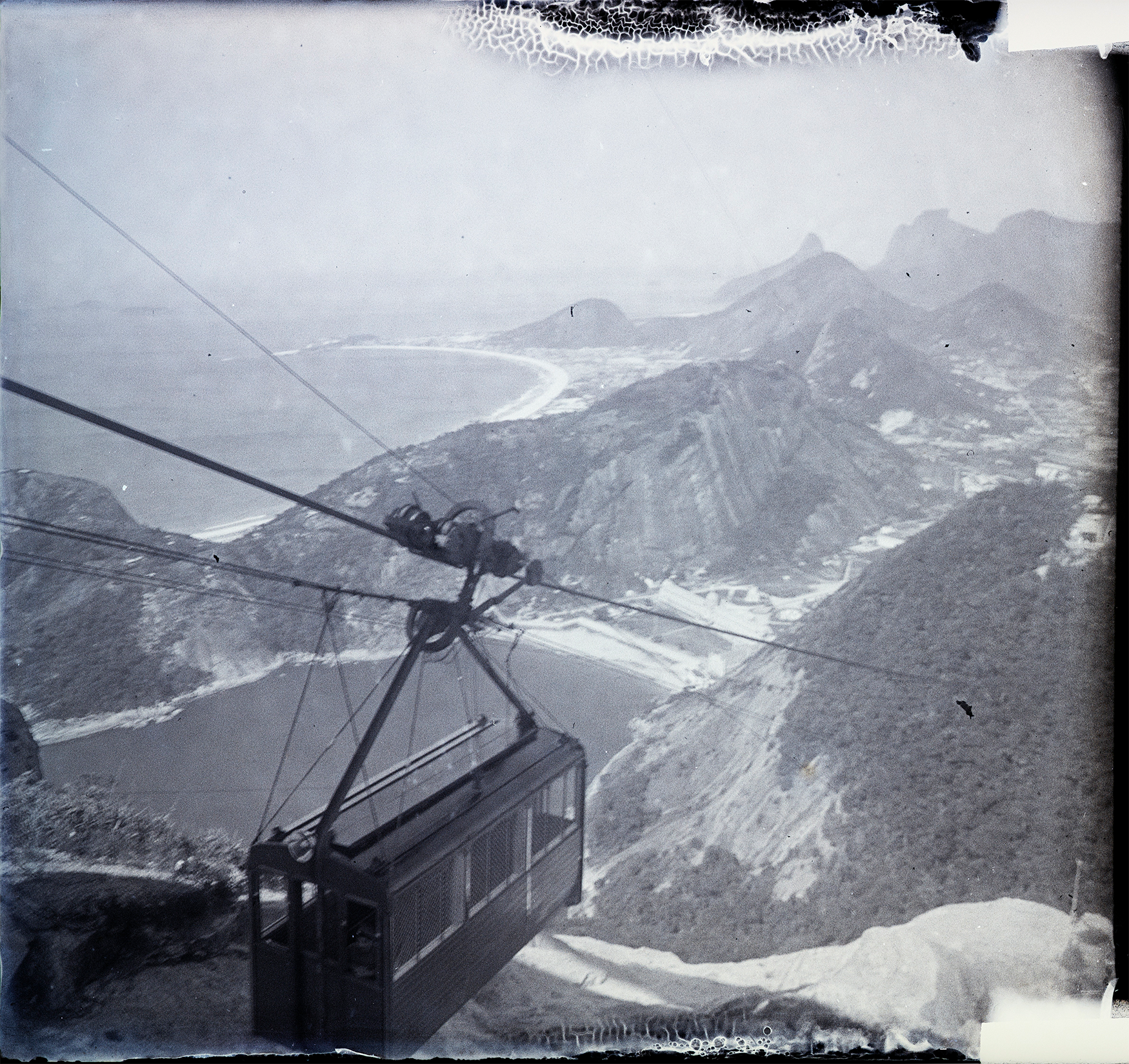 The first leg of the tramway, 1732 feet from Praia Vermelha to Morro da Urca, opened in 1912. This section, 2460 feet from the top of Morro da Urca to Pão de Açúcar, opened in January 1913 (the Morro da Babilônia section was never built). It took the wooden cars, quickly nicknamed bondinhos after Rio’s streetcars, roughly 11 minutes of travel time to go from sea level to mountaintop (excluding the transfer on top of Morro da Urca). Ramos’ sightseeing tramway appears to have been an immediate success, and he would lead the company he founded until 1934.