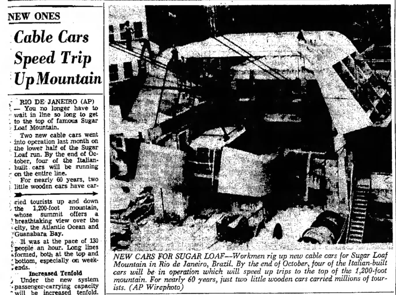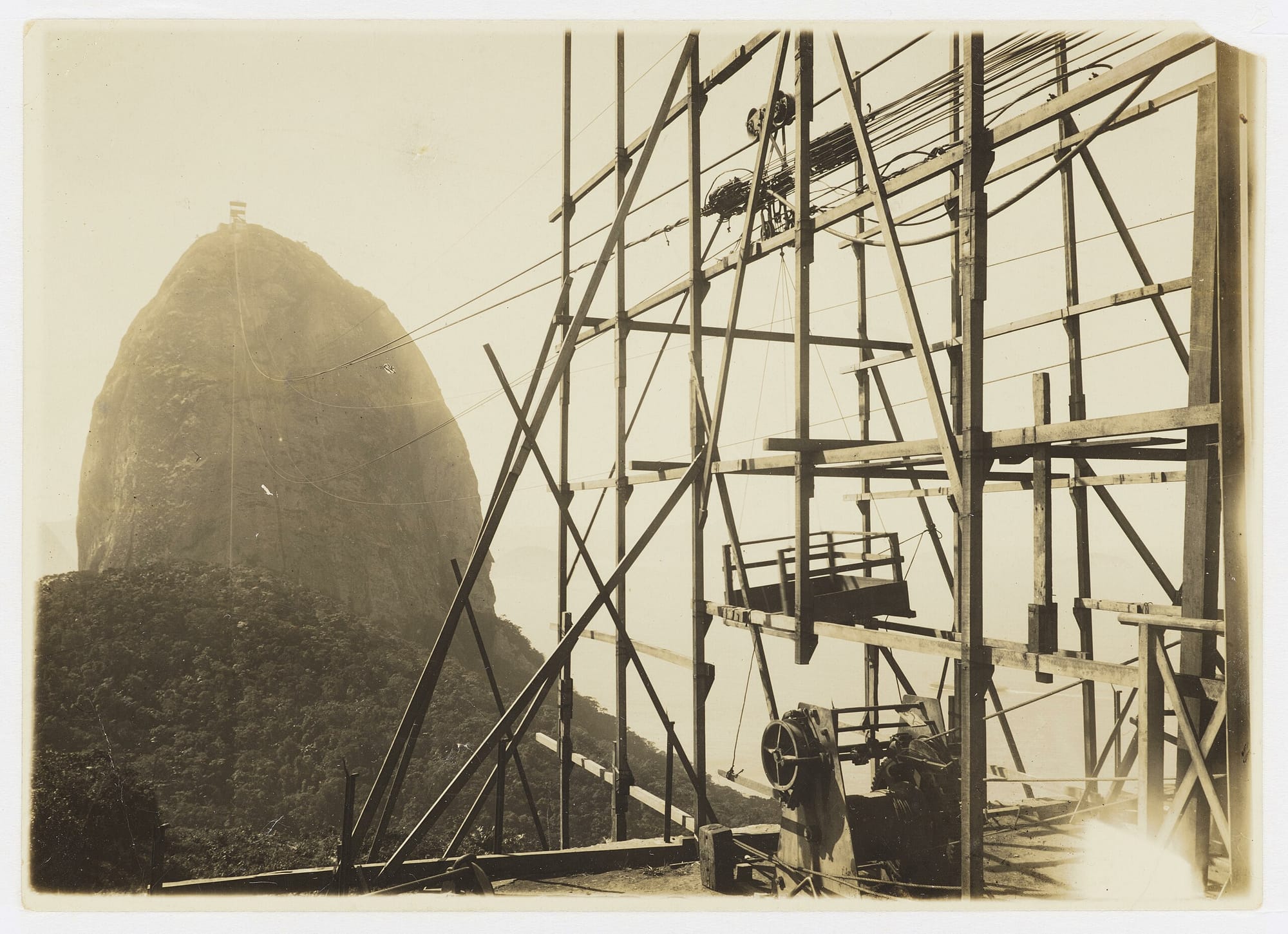 This was still a newish technology operating in challenging terrain, and construction of the Sugarloaf cable car was risky and expensive. With no existing cable cars in Brazil (or all of Latin America, really), all equipment had to be imported from Germany—Ramos contracted the German company J. Pohlig Heckel out of Cologne to design and manufacture the cable car equipment. On the Brazil side, to actually hang the cables, hundreds of construction workers climbed Pão de Açúcar and Morro da Urca, first with winch parts to construct the tools to haul the heavier materials and equipment up the mountain. The company ultimately built a workshop on top of Morro da Urca to maintain the German-built cabins, winches, and cable systems—the Sugarloaf Cable Car is an interesting combination of early 20th century German technology, local Brazilian know-how, and an entrepreneurial gamble on Rio’s fledgling tourism industry.