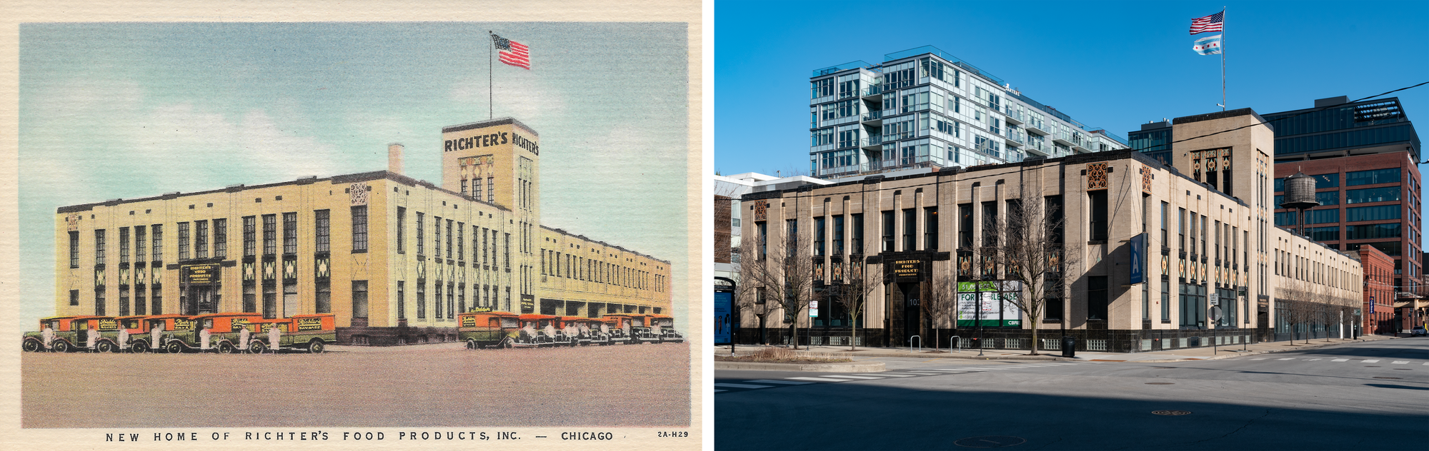 Built as an exuberant Art Deco sausage factory in 1931, the Richter's Food Products Building in West Loop is an illuminating stand-in for the last 90 years of the neighborhood: from meatpacking to a furniture showroom to the one-time headquarters of developer Sterling Bay, who made their name (and a ton of money) defining the modern West Loop. It also parallels the broader trajectory of urban economies, with mass production replaced by real estate and financialization.