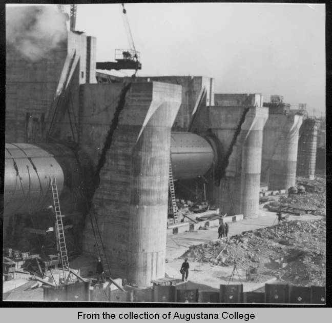 The 9-foot Channel Project was the Upper Mississippi’s greatest manmade transformation - and, under the Roosevelt Administration, the project itself transformed immensely. Begun as a technocratic US Army Corps of Engineers (USACE) navigation project that aimed to support Midwestern farmers with a cheap, reliable river shipping system, under FDR it became a massive public employment program. The initial USACE plans called for the Rock Island District to build Lock and Dam No. 15 first, a model for the 28 other locks and dams that would turn the Upper Mississippi into a slack-water navigation system, a series of deep river pools, connected by locks, that would (cheaply, competitively) bring Midwest agricultural goods to the world. In planning since the 1920s, construction here began in 1931, but upon taking office FDR scaled the program massively. To keep the Midwest employed during the Great Depression, the federal government launched construction on all 29 locks and dams basically simultaneously, rather than the original plan of building a few at a time.