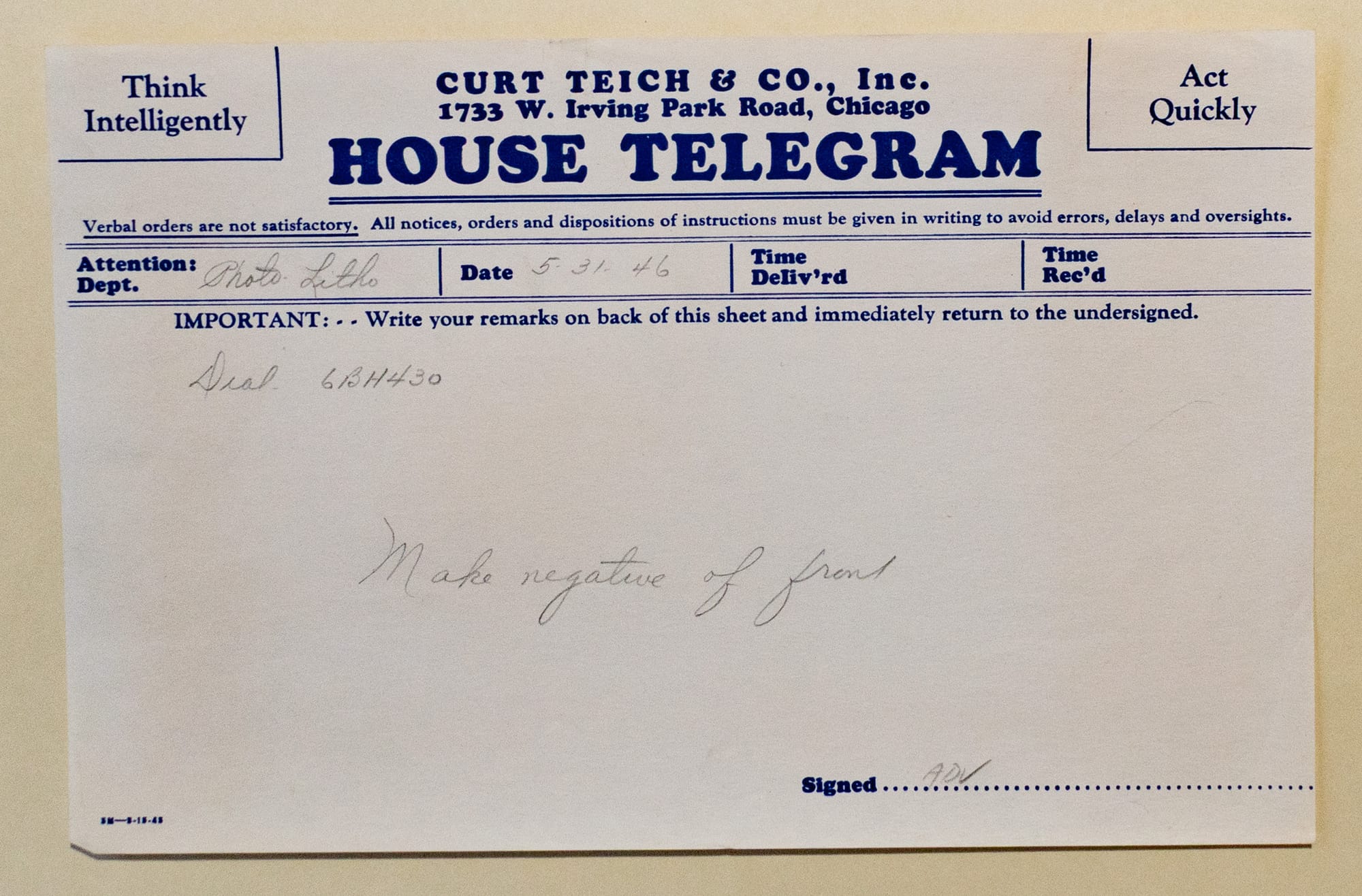 Photo negative | Photo | Retouched photo | Proof | Verso proof | Production order | House Telegram