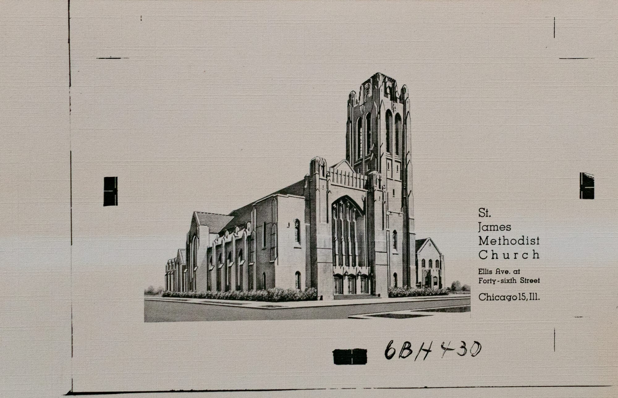After the fire, St. James merged with Oakland Methodist Episcopal, and the combined congregation hired the high-profile firm of Tallmadge & Watson for their new church. Tallmadge & Watson were prolific Chicago architects, known for their Prairie-style homes and Gothic churches—here, you can even catch a hint of early Art Deco in the verticality and stripped down ornamentation.