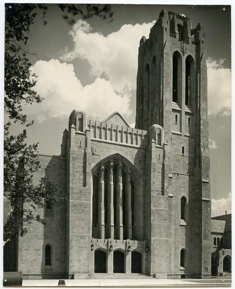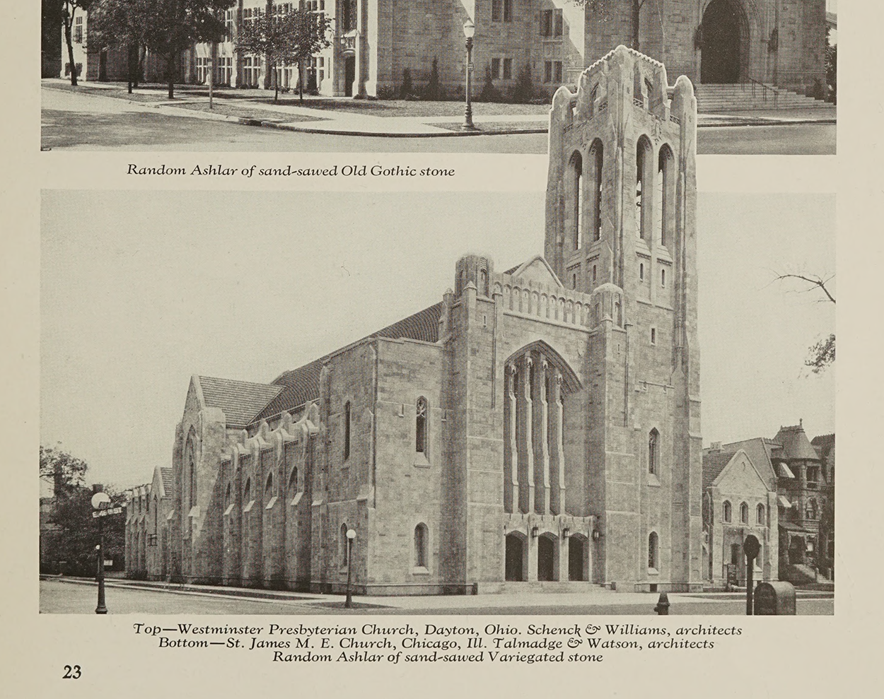 Undated IL5360_3 © Indiana Limestone Company. Courtesy, Indiana Geological and Water Survey, Indiana University, Bloomington, Indiana | Sanctuary photos from the Architectural Record, 1927 | In Stone, 1926 | In 'Old Gothic and Variegated for Random Ashlar', Indiana Limestone Company, the Internet Archive | Two 1970s photos, Illinois State Historic Preservation Office