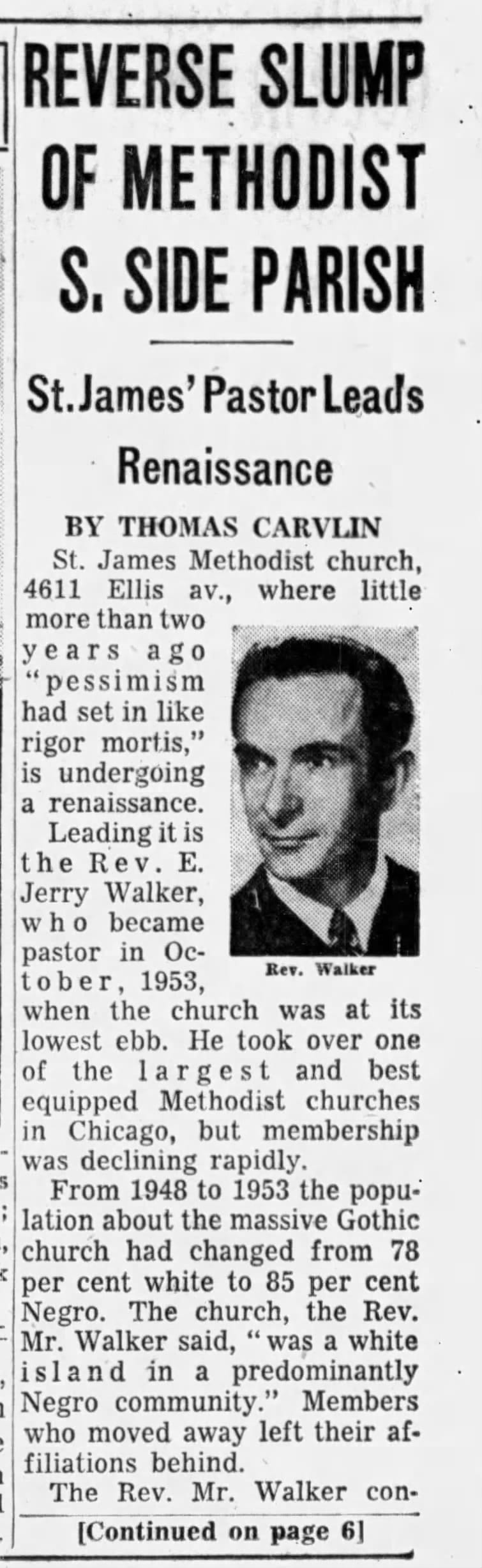 The integration of St. James: this part of Kenwood flipped from 78% white in 1948 to 85% Black in only five years—man, blockbusting and white panic were POWERFUL. Rather than pick up and leave like many Protestant congregations, a shrinking St. James UMC decided to respond to white flight in a relatively novel way (...by Chicago standards): they opened up their doors to the new neighbors.