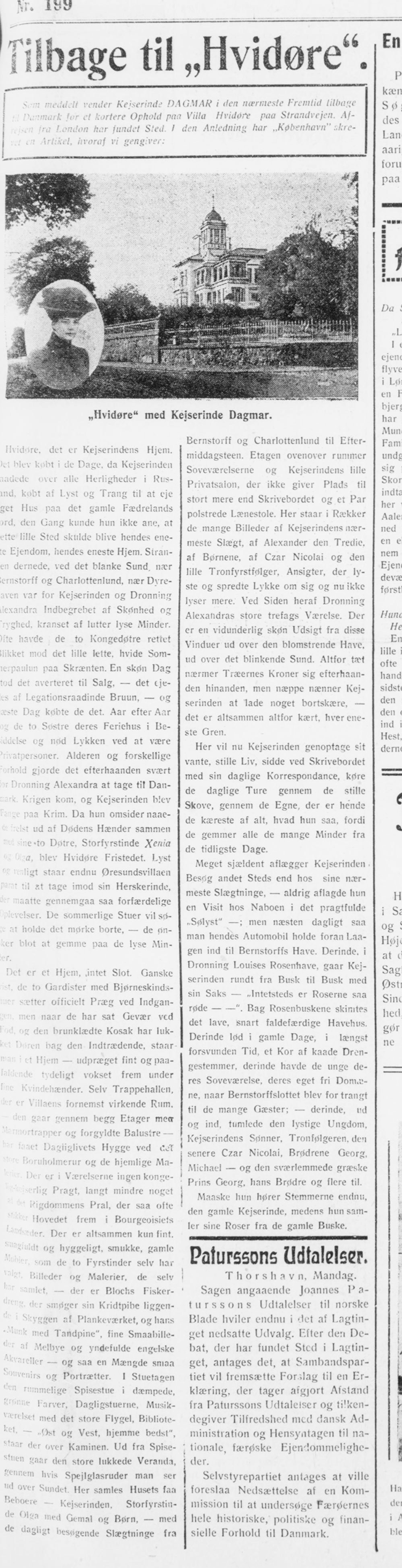 1923 articles about the Dowager Empress heading back to Hvidøre, considering selling it, denying that a sale was considered.